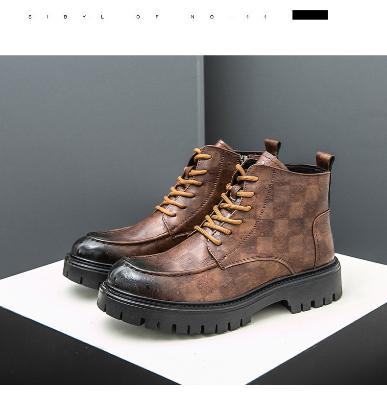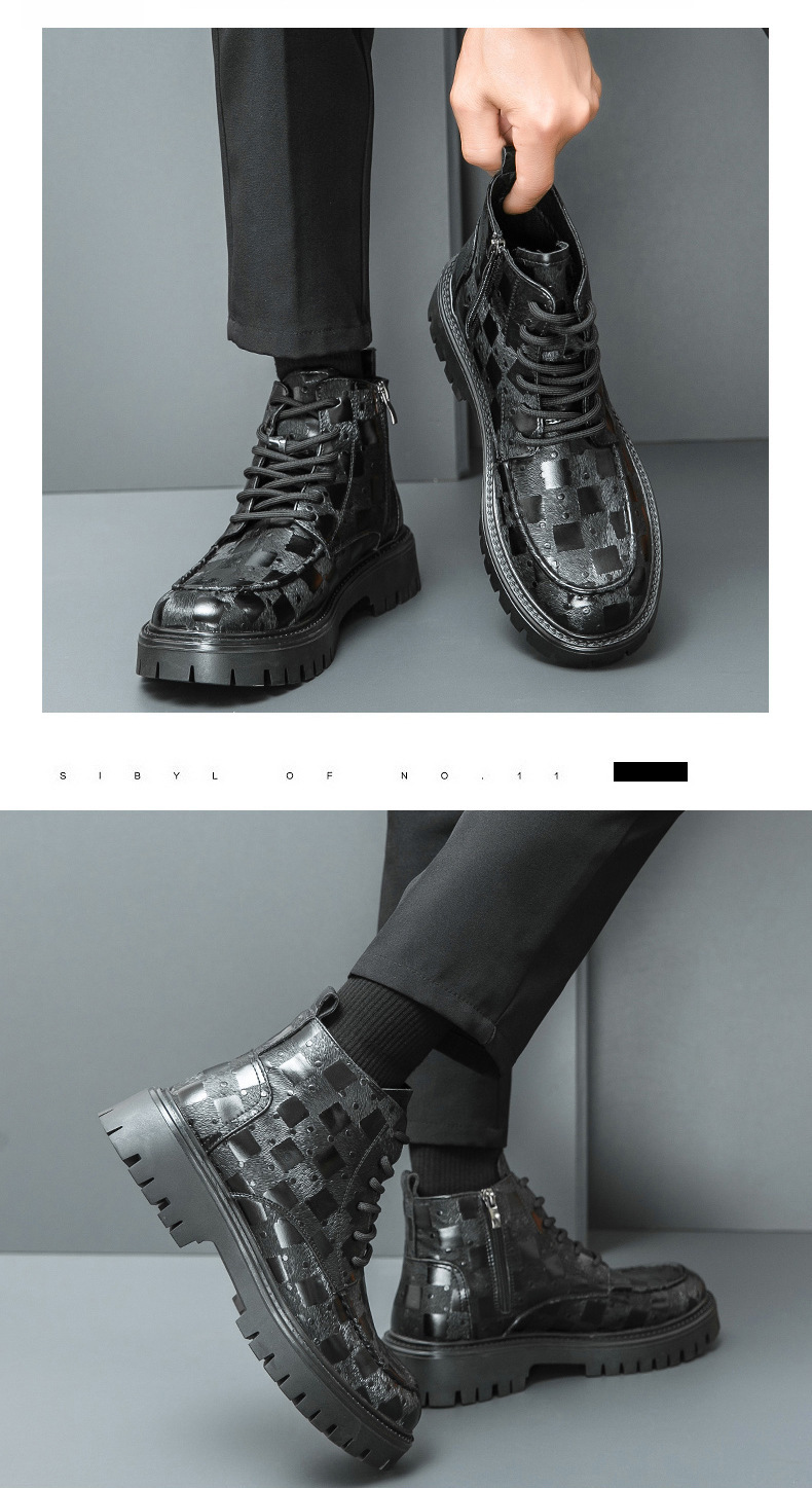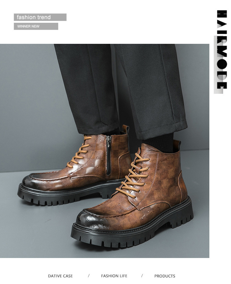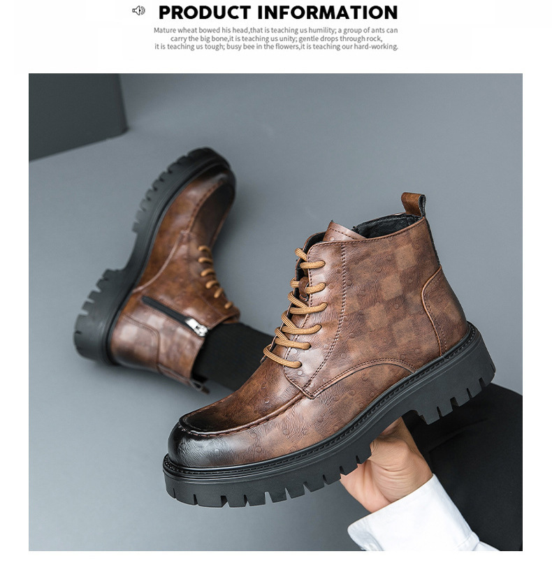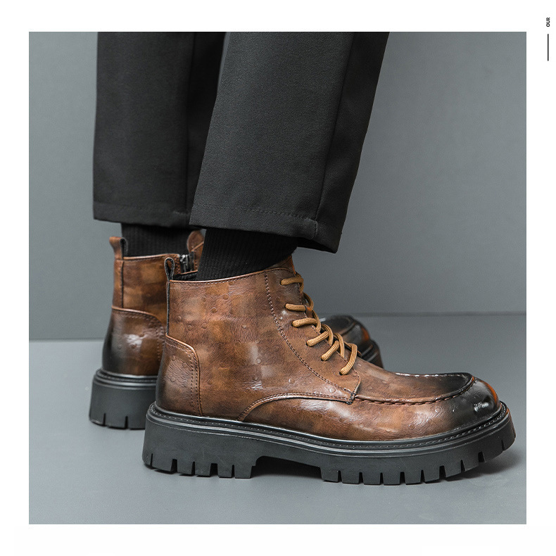 Hombre alto otoño y invierno Martin cuero de negocios redondo zapatos de cuero con cremallera botas de trabajo británicas botas
