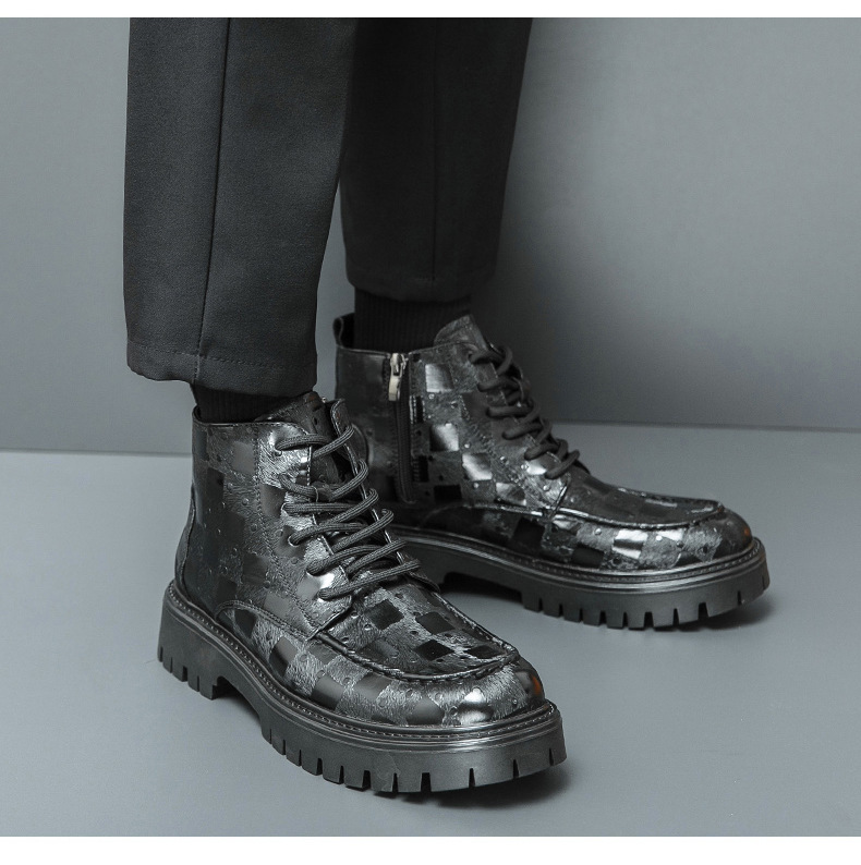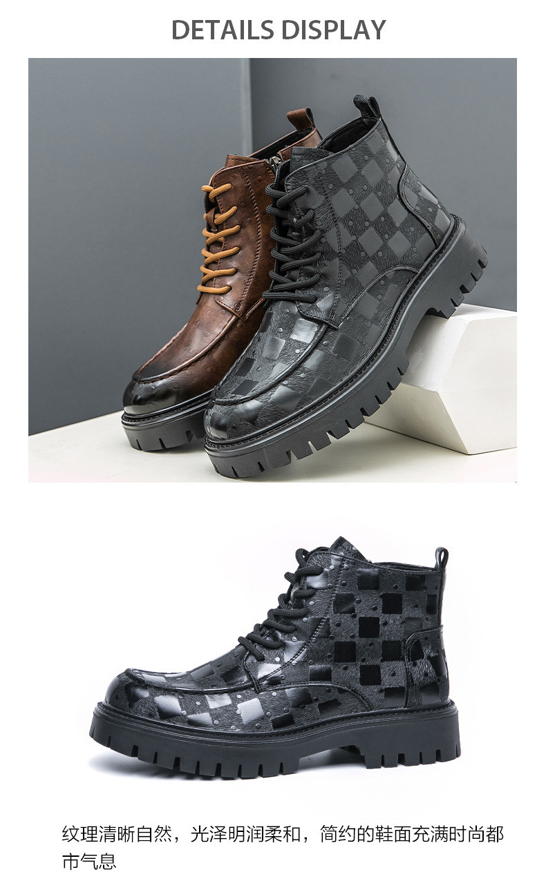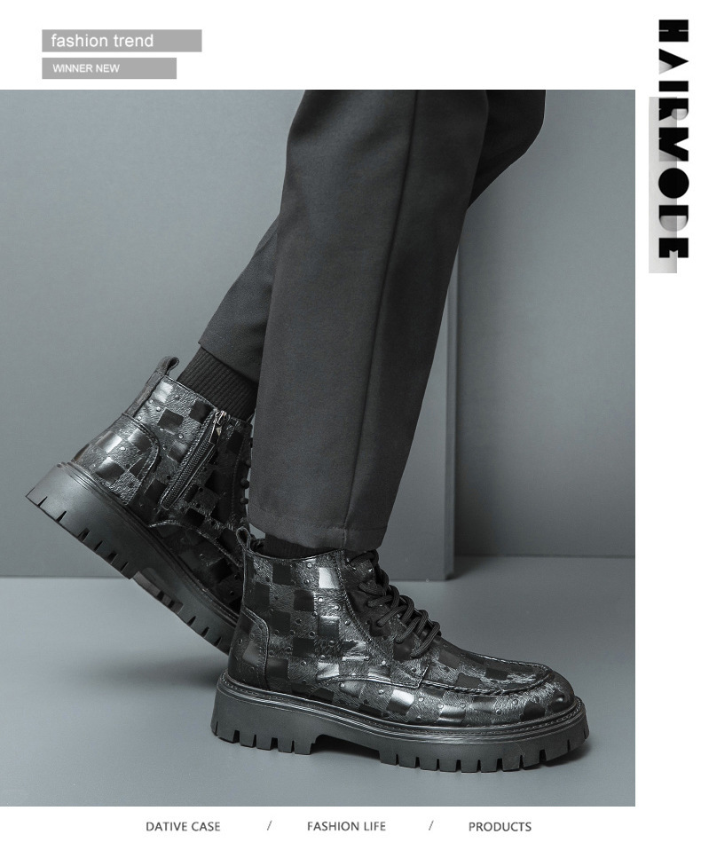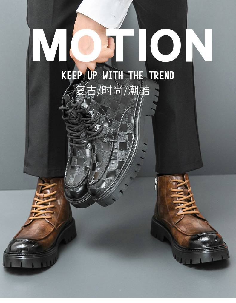 Hombre alto otoño y invierno Martin cuero de negocios redondo zapatos de cuero con cremallera botas de trabajo británicas botas
