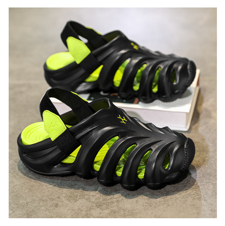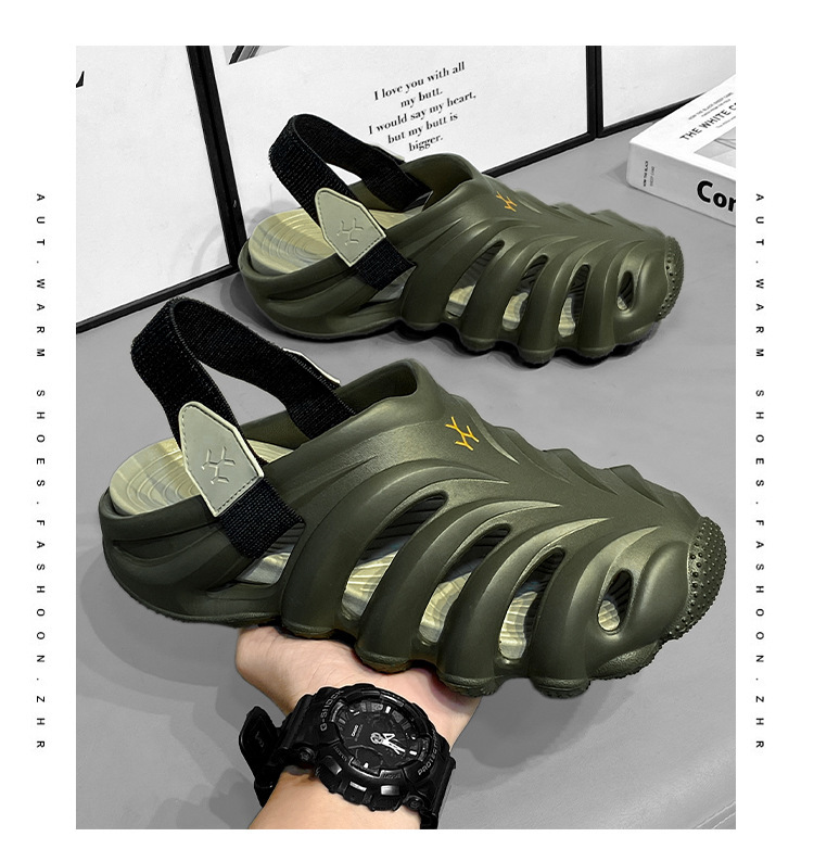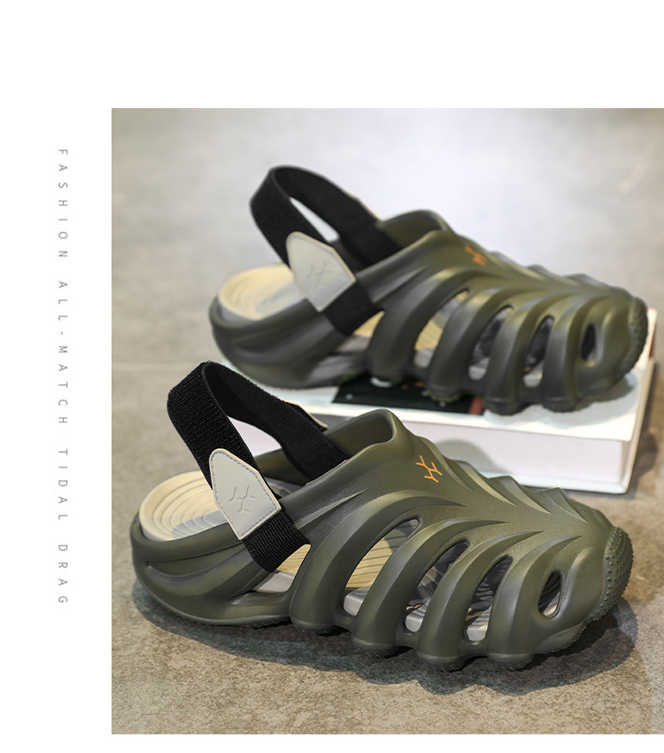 Sandalias para hombres de verano al aire libre zapatillas de cabeza de bolsillo para hombres dos usos zapatos de agujero de pesca de playa zapatillas frías