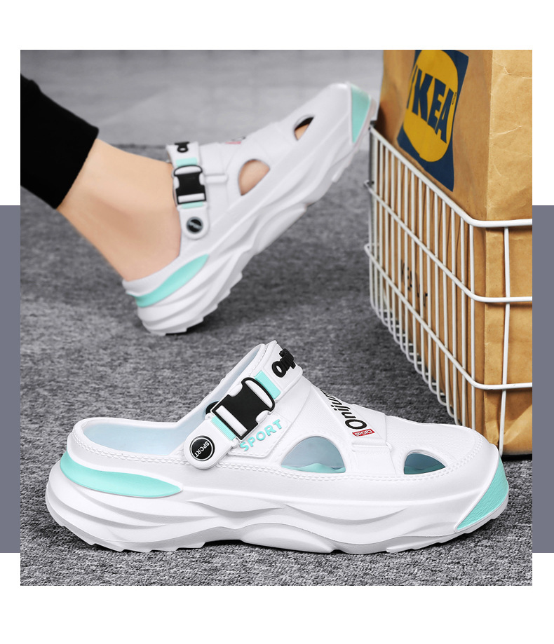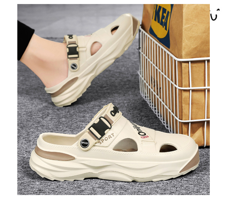 Zapatos de agujero transfronterizos de tamaño grande para hombres de verano nuevos zapatillas de bolso EAV con suela gruesa para aumentar la sensación de pisar zapatos de playa casuales