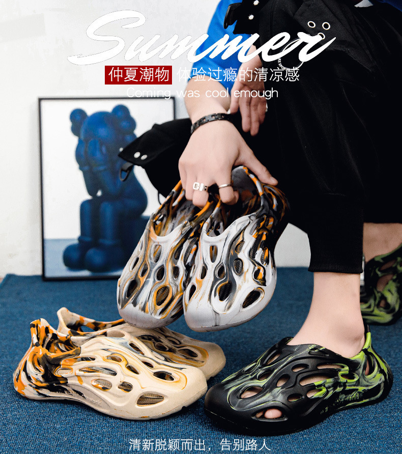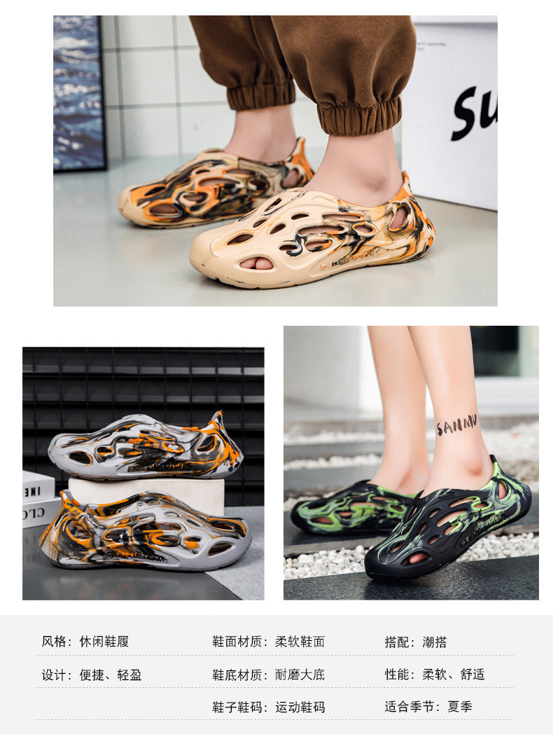 Una pieza de zapatos de agujero para hombres 2024 verano nuevo eva pedalear sensación ligera antideslizante sandalias de playa