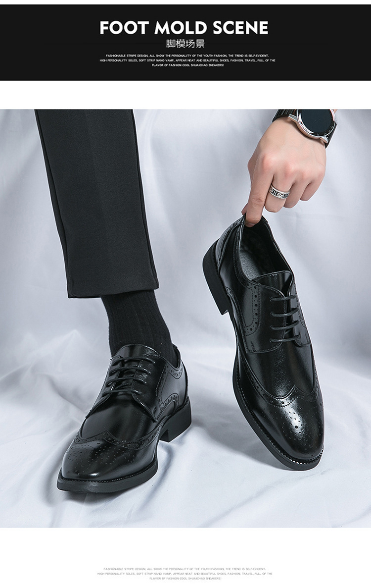 Zapatos de hombre de tamaño grande transfronterizo, zapatos de cuero de punta de viento británicos tallados, zapatos de cuero casuales con suela gruesa y alta, zapatos me