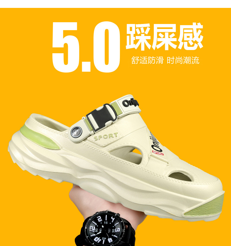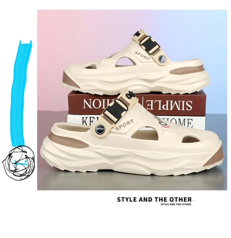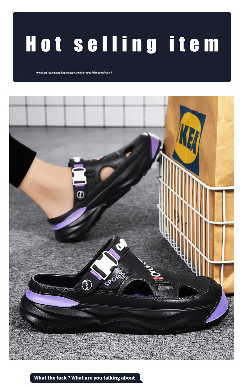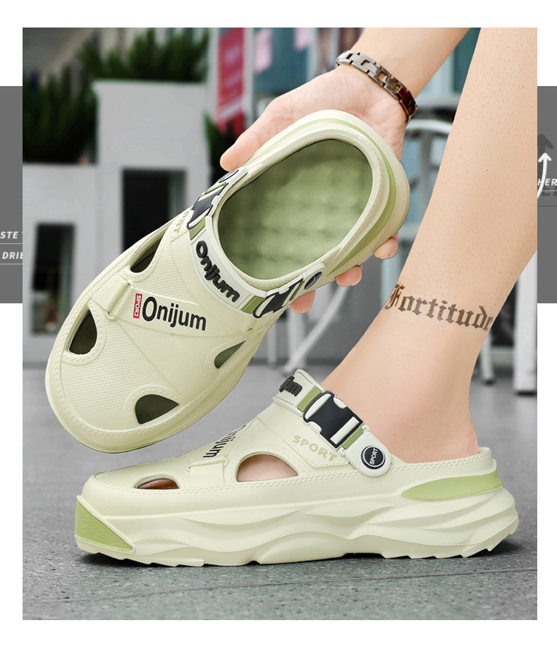 Transfronterizos de tamaño grande con una base gruesa para aumentar la altura de los zapatos agujeros de mierda para hombres de verano resbaladantes zapatillas de playa casuales