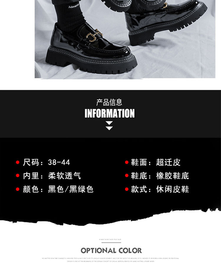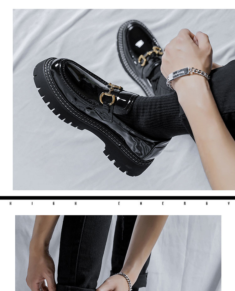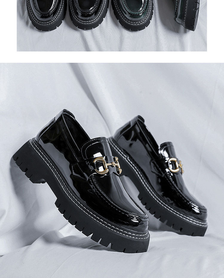 Zapatos de cuero con hebilla de caballo, zapatos de cuero lacados para hombres, zapatos de alta altura, zapatos de noche, zapatos casuales para hombres británicos