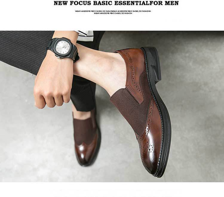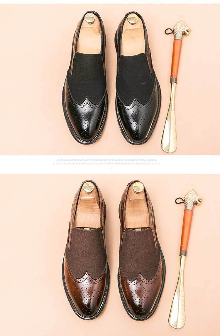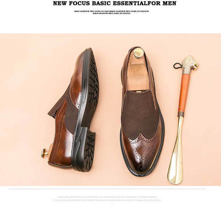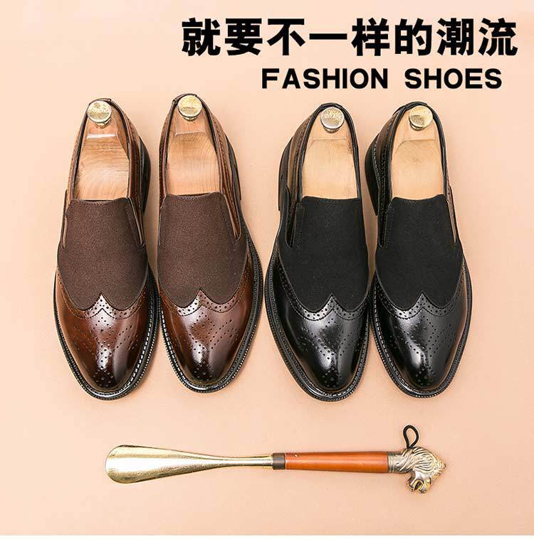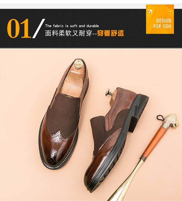 Bloc zapatos de cuero para hombres tallado flores británicos negocios ocio suela gruesa elevación de un pedal peluquería punta zapatos de moda Lefour