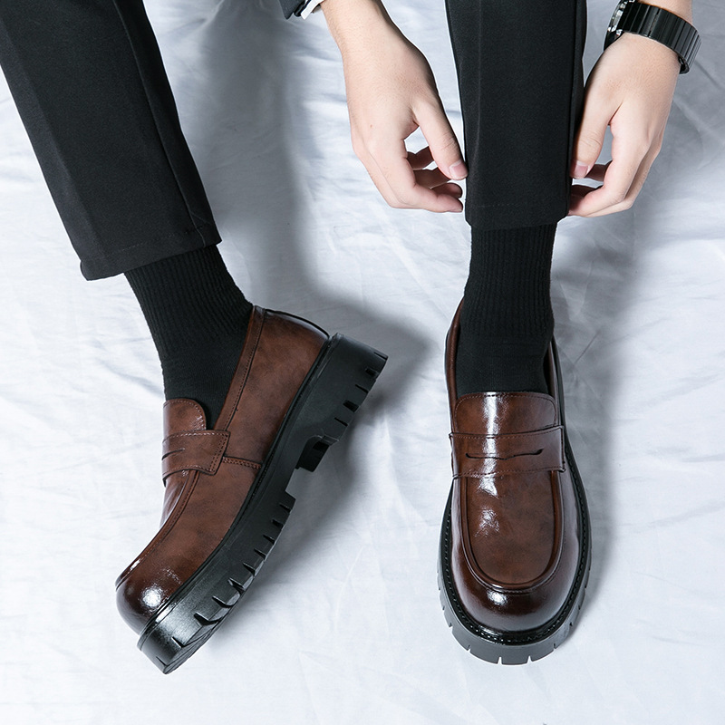 Zapatos de verano de cuero para hombres con suela gruesa estilo británico vestido de negocios casual zapatos de moda con suela gruesa aumentando la altura de los zapatos de boda