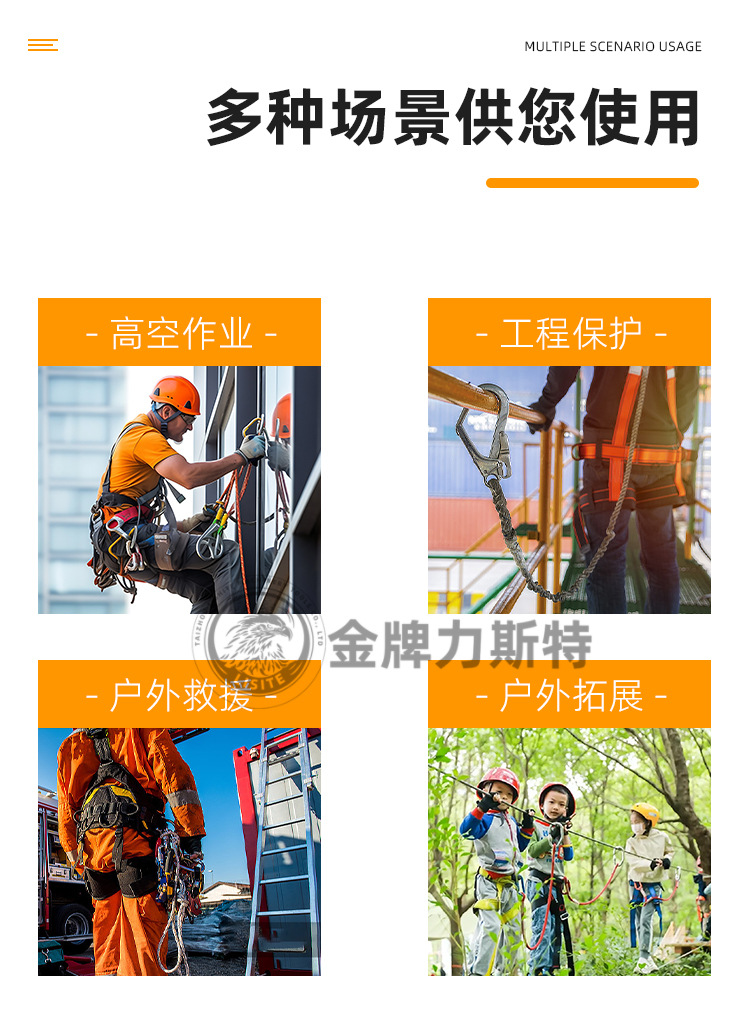 | Alcance del uso | Ampliamente utilizado en la prevención de caídas a gran altitud, con el uso de cinturones de Seguridad |