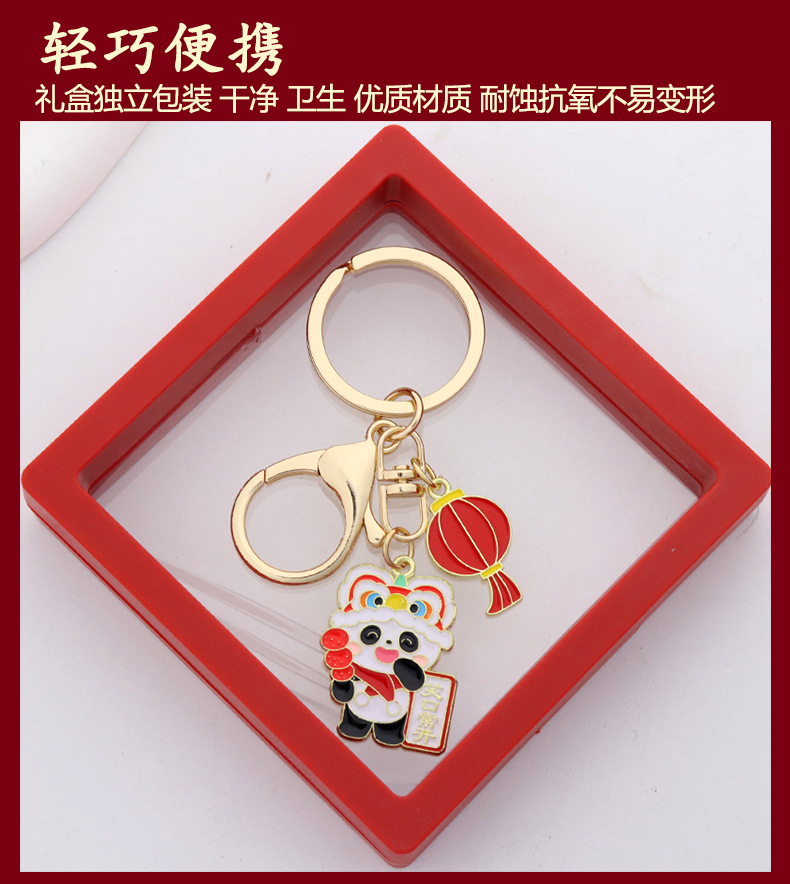 Yiwu 2 yuanes pequeños productos al por mayor panda llavero de metal linterna colgante de caja de regalo de Año Nuevo