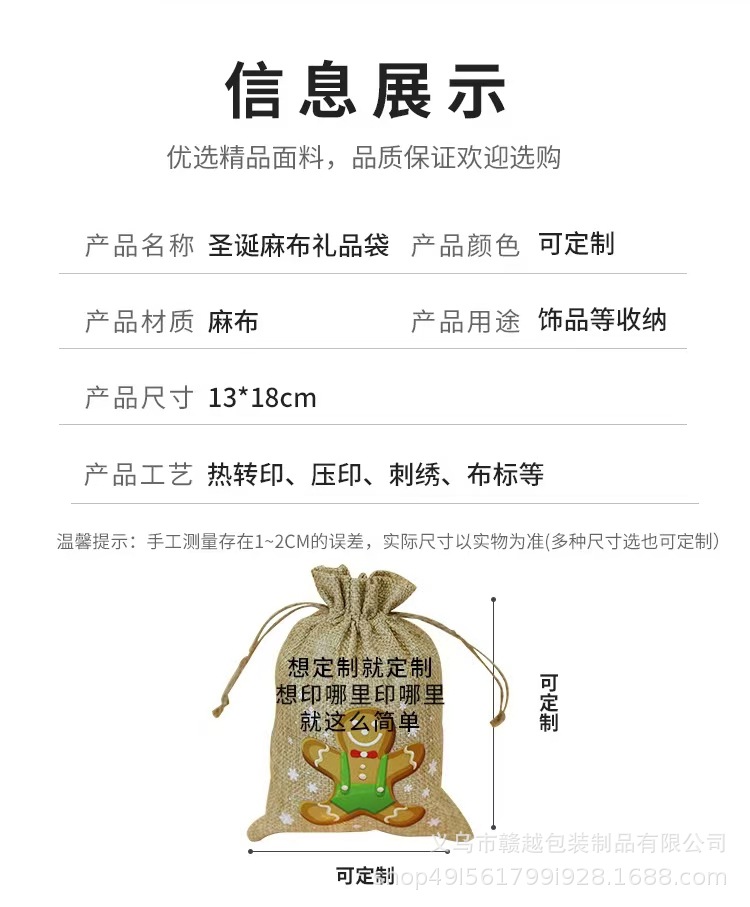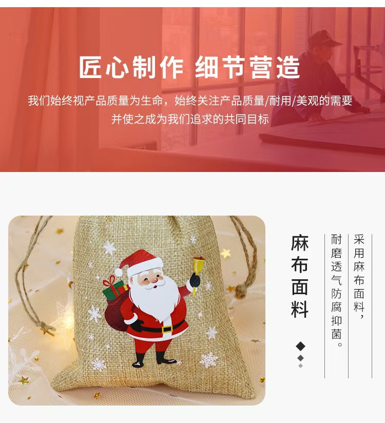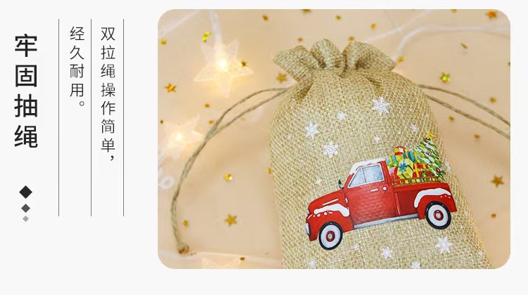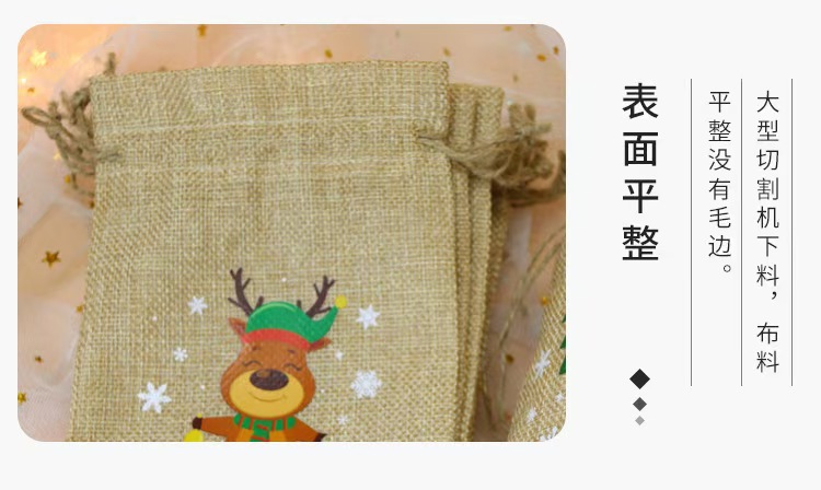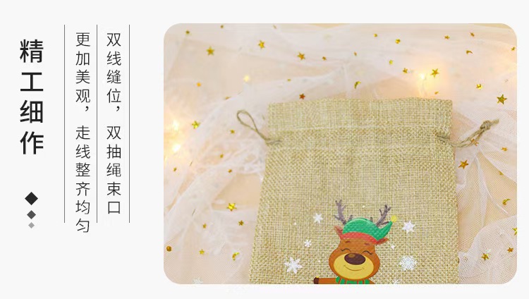 Nuevos regalos de Navidad transfronterizos de lino belos paquetes de bolsas dulces de Nochebuena regalos de lino bolsas de color primario