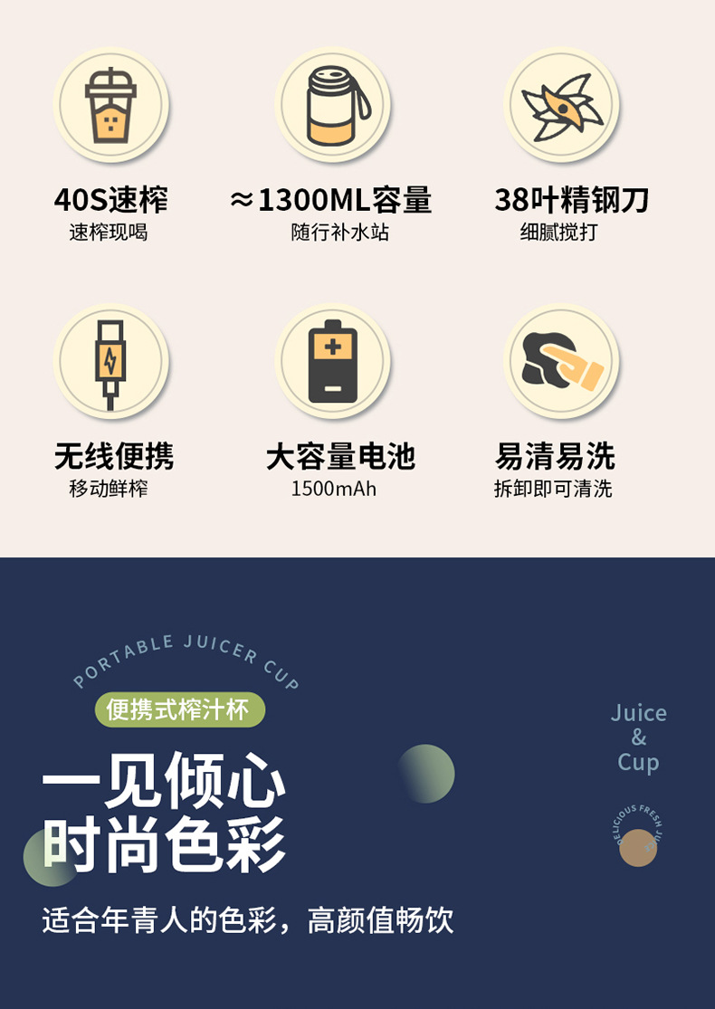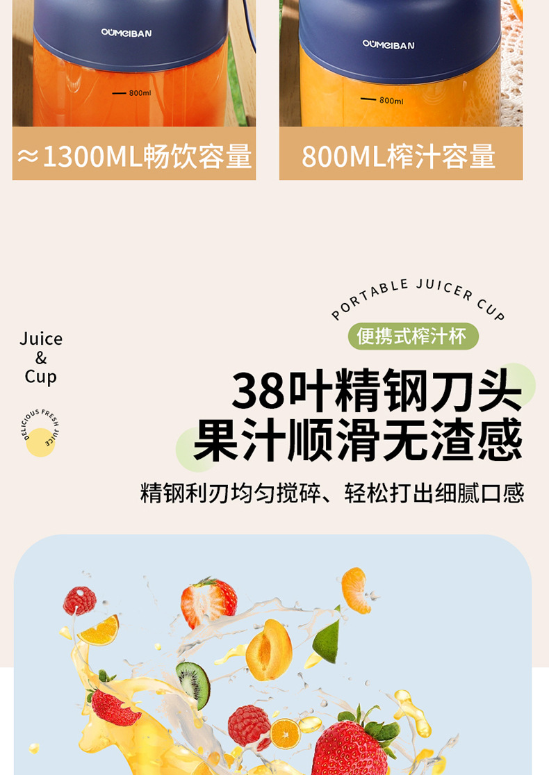 Omeibang 1300 exprimidor 38 páginas cuchillo puede triturar hielo, taza de jugo eléctrico multifuncional portátil de gran capacidad, jugo