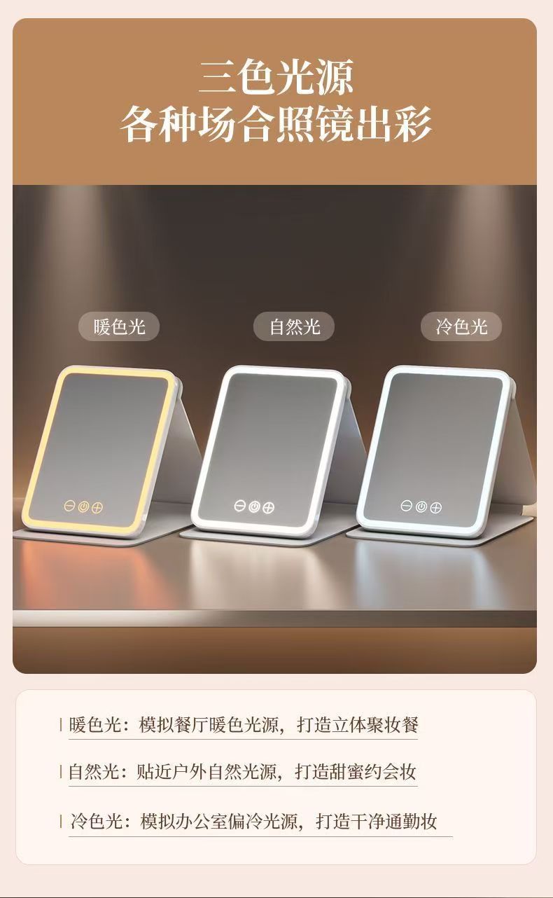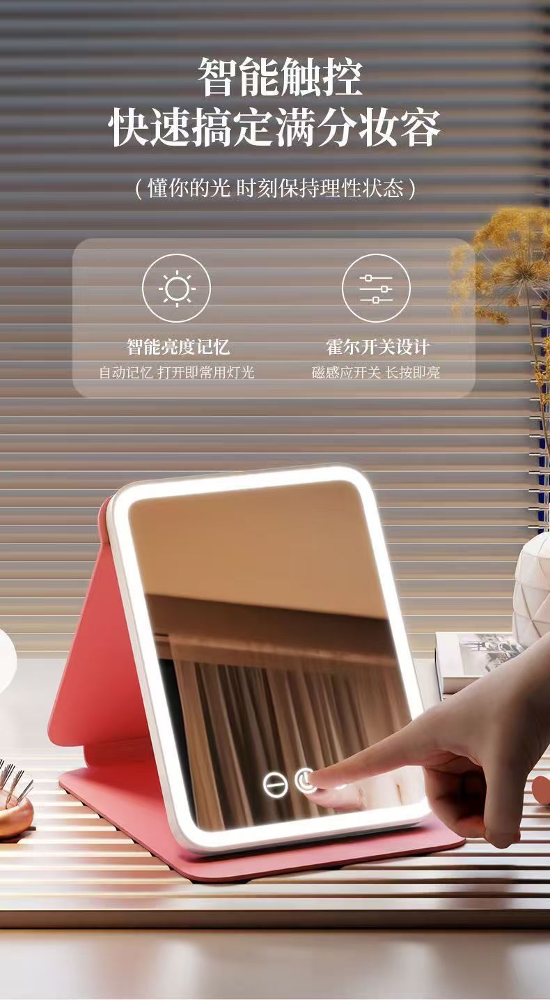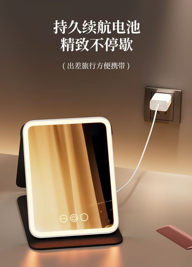 Espejo de maquillaje led con luz tocador plegable Smart HD escritorio dormitorio de estudiantes espejo portátil portátil