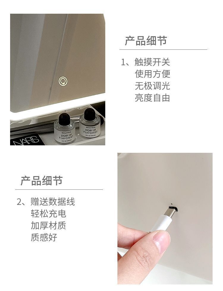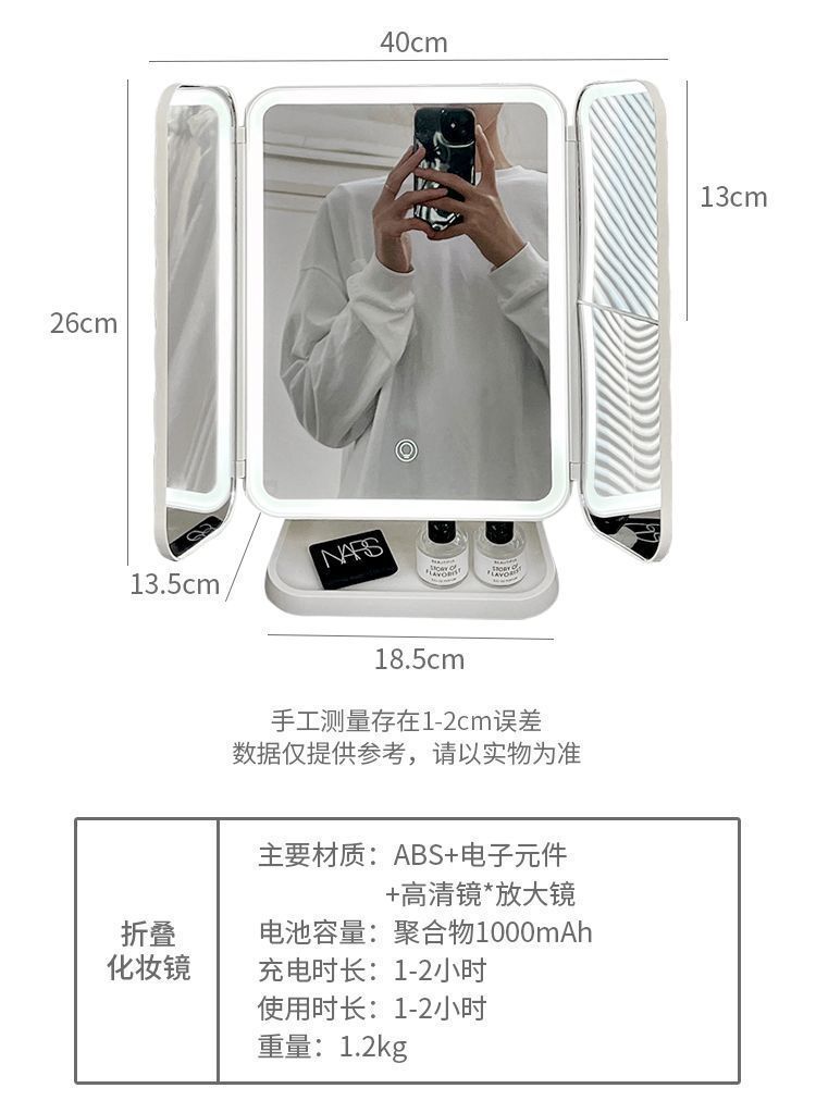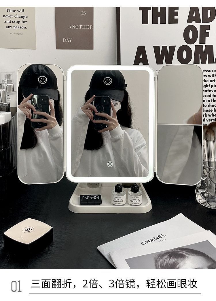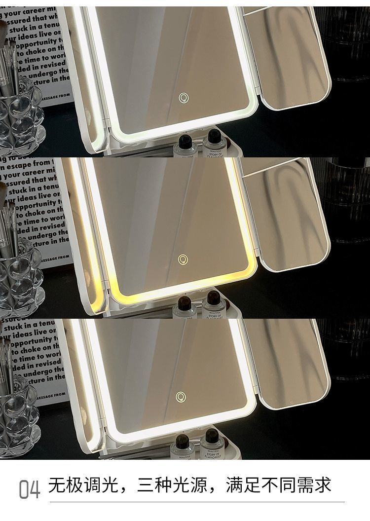 Espejo de maquillaje especial para dormitorios de estudiantes, caja de almacenamiento, espejo plegable portátil integrado con lámpara, mostrador de vestir, espejo de maquillaje de escritorio
