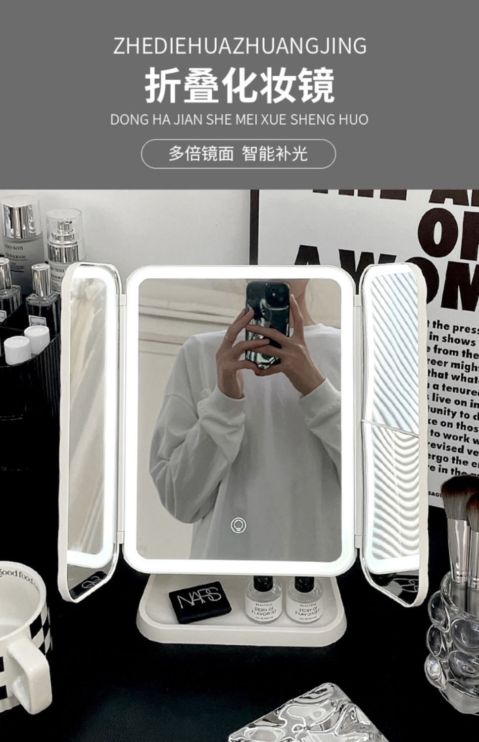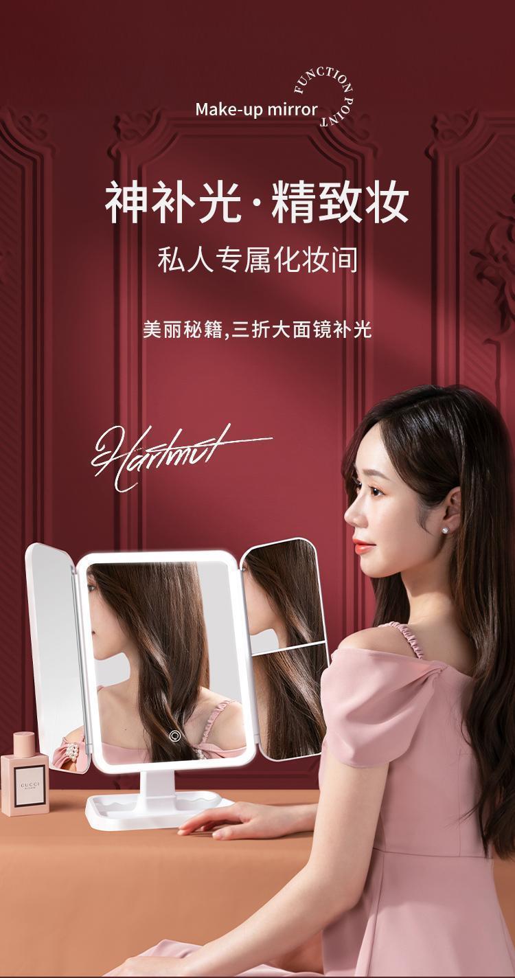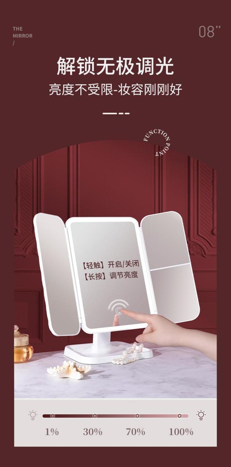Espejo de maquillaje especial para dormitorios de estudiantes, caja de almacenamiento, espejo plegable portátil integrado con lámpara, mostrador de vestir, espejo de maquillaje de escritorio