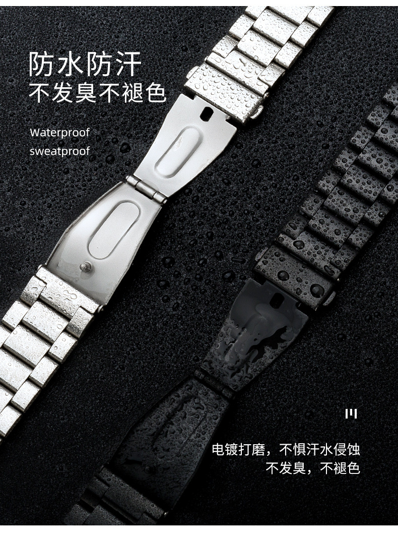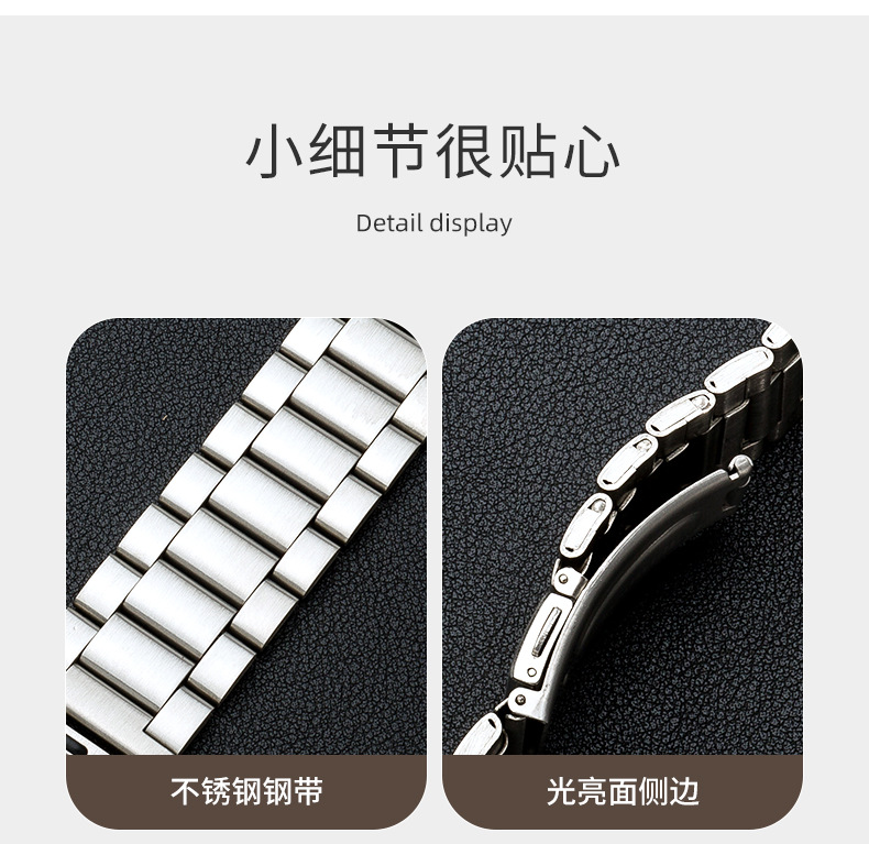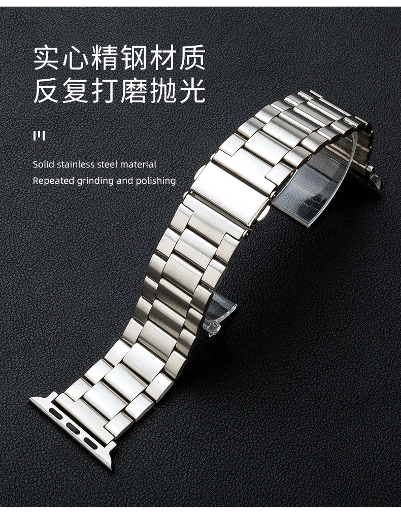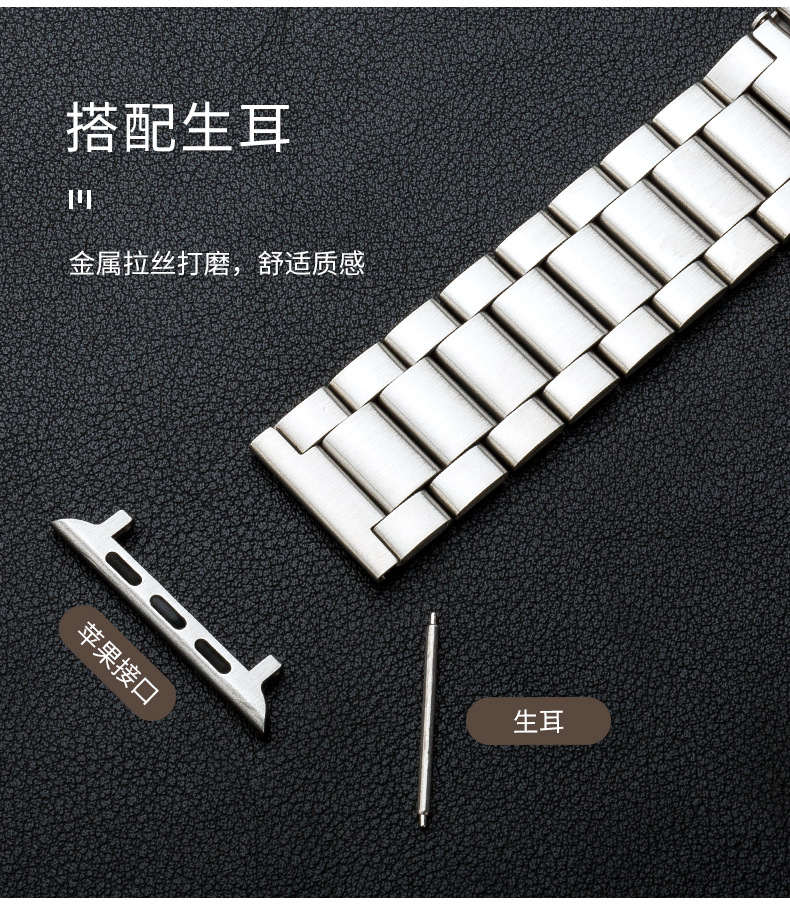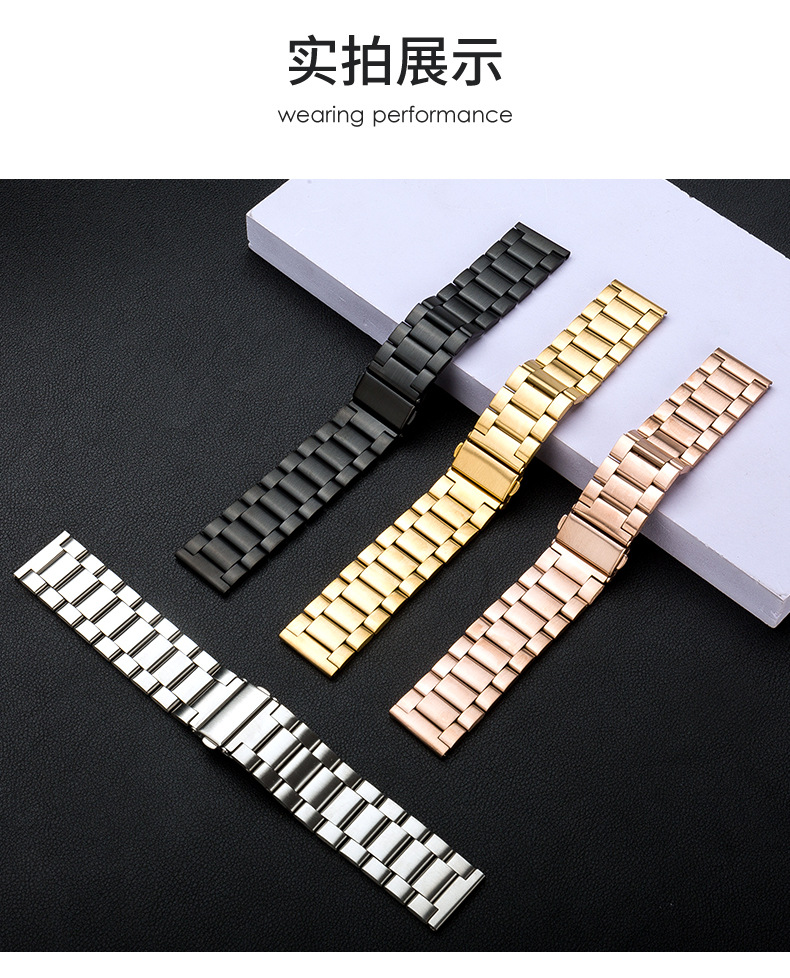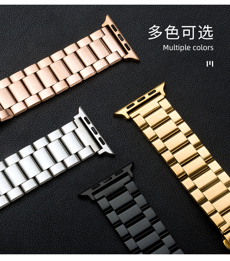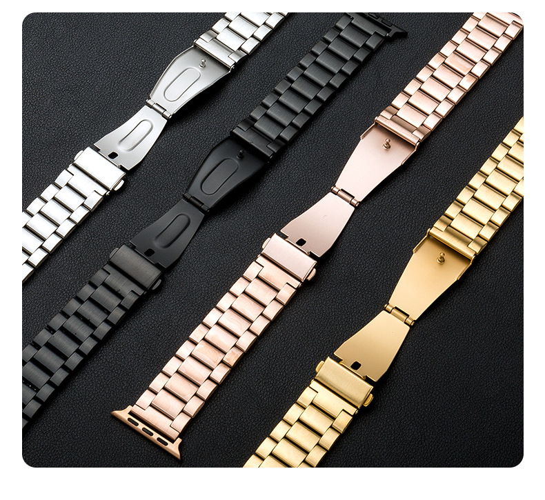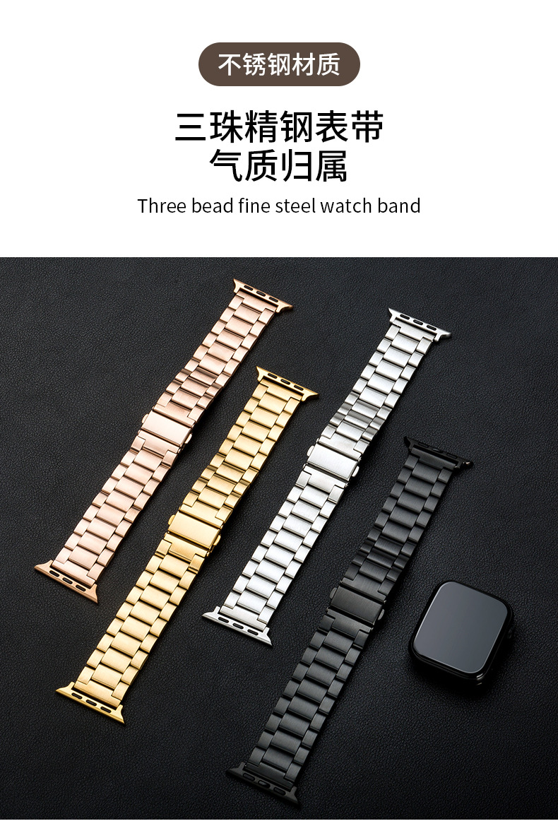 Adecuado para tres cuentas reloj banda de acero inoxidable metal iwatch Correa Apple Watch 8/SE Samsung Huawei GT