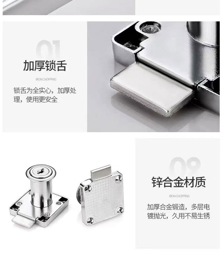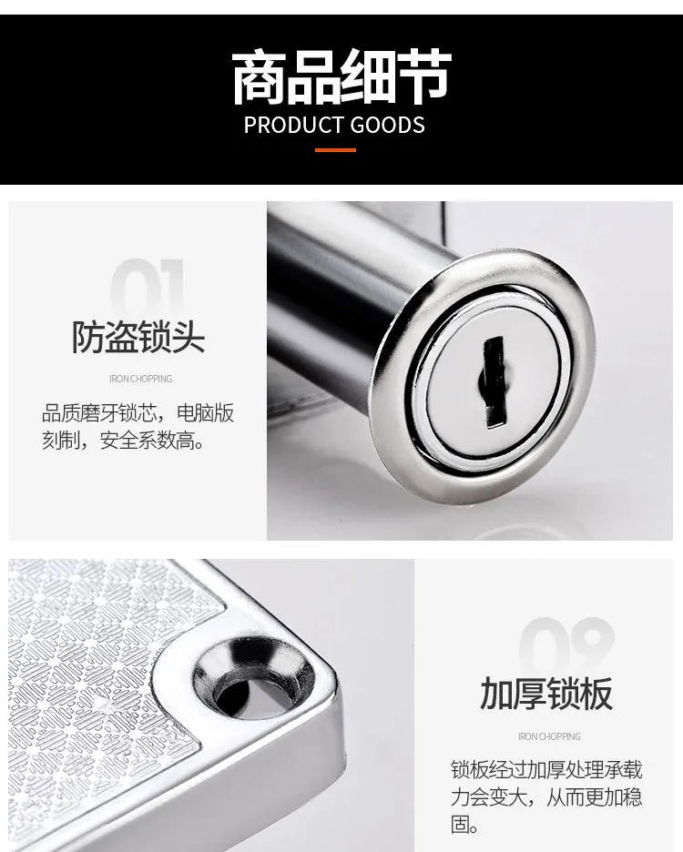 | Especificaciones | Cerradura antigua 101, cerradura antigua (núcleo de cobre), cerradura de cabeza grande, 136 - 22 (acero laminado en frío), 138 - 22 (acero laminado en frío), 136 - 22 plata (aleación de zinc), 138 - 22 plata (aleación de zinc), 138 - 38 plata (aleación de zinc), 136 - 22 oro (aleación de zinc), 138 - 22 oro (aleación de zinc), 138 - 38 oro (aleación de zinc), 138 - 22 negro (aleación de zinc), 138 - 32 negro (aleación de zinc), 138 - 32 negro (aleación de zinc), 138 - 32 negro (aleación de zinc), refuerzo 22 (núcleo de computadora), 22 (lengua inclinada), refuerzo (32), lengua inclinada), Segunda marcha inclinada cerradura, cerradura de doble puerta 16, cerradura de doble puerta 19 |