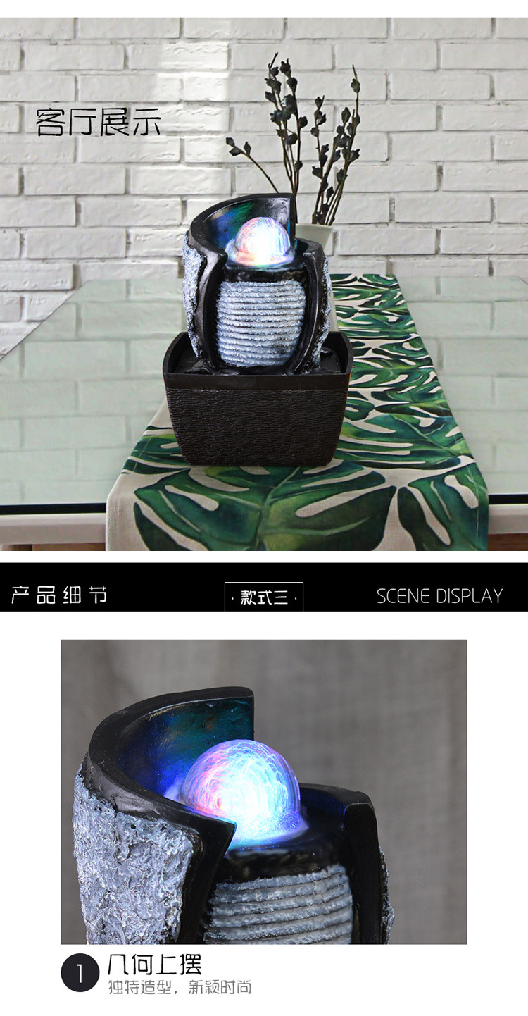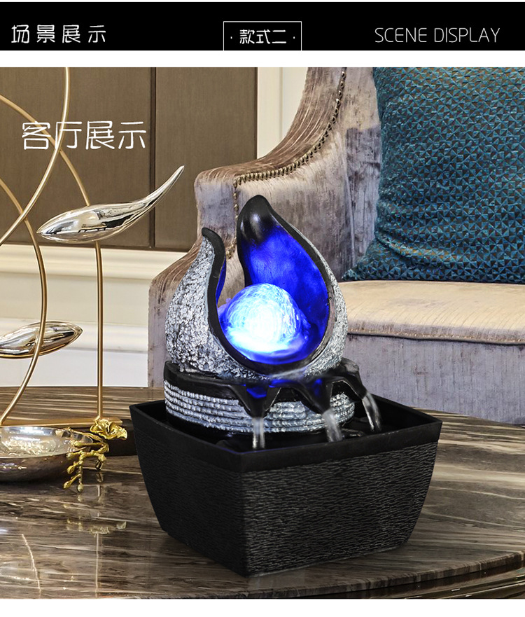 Adornos de agua corriente Agua circulante Fuente de lujo ligera moderna Escritorio de oficina Bola de feng shui pequeña decoración de sala de estar