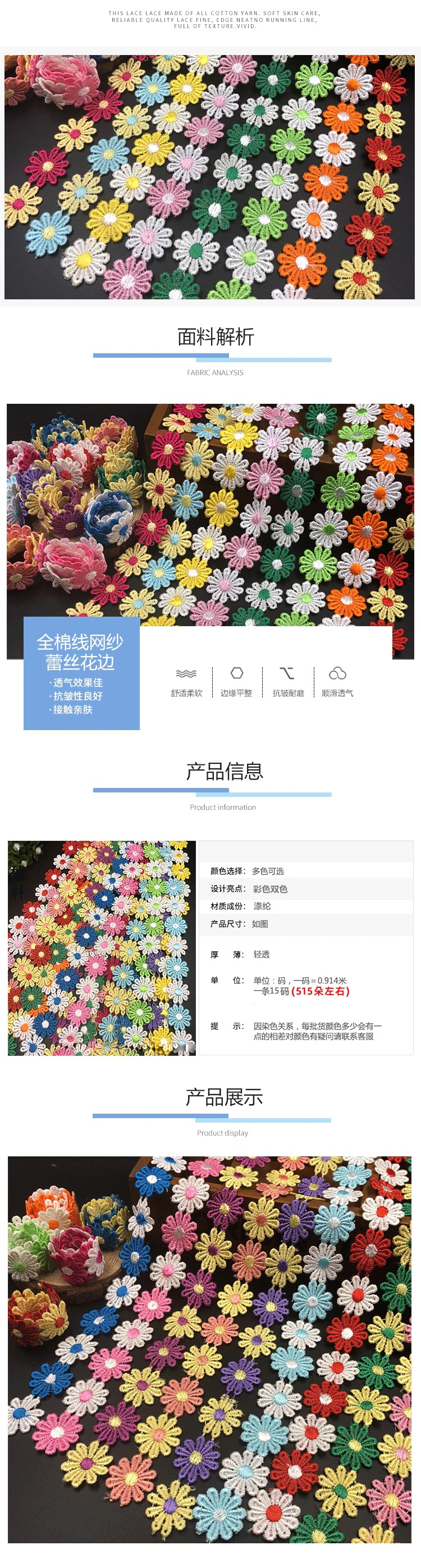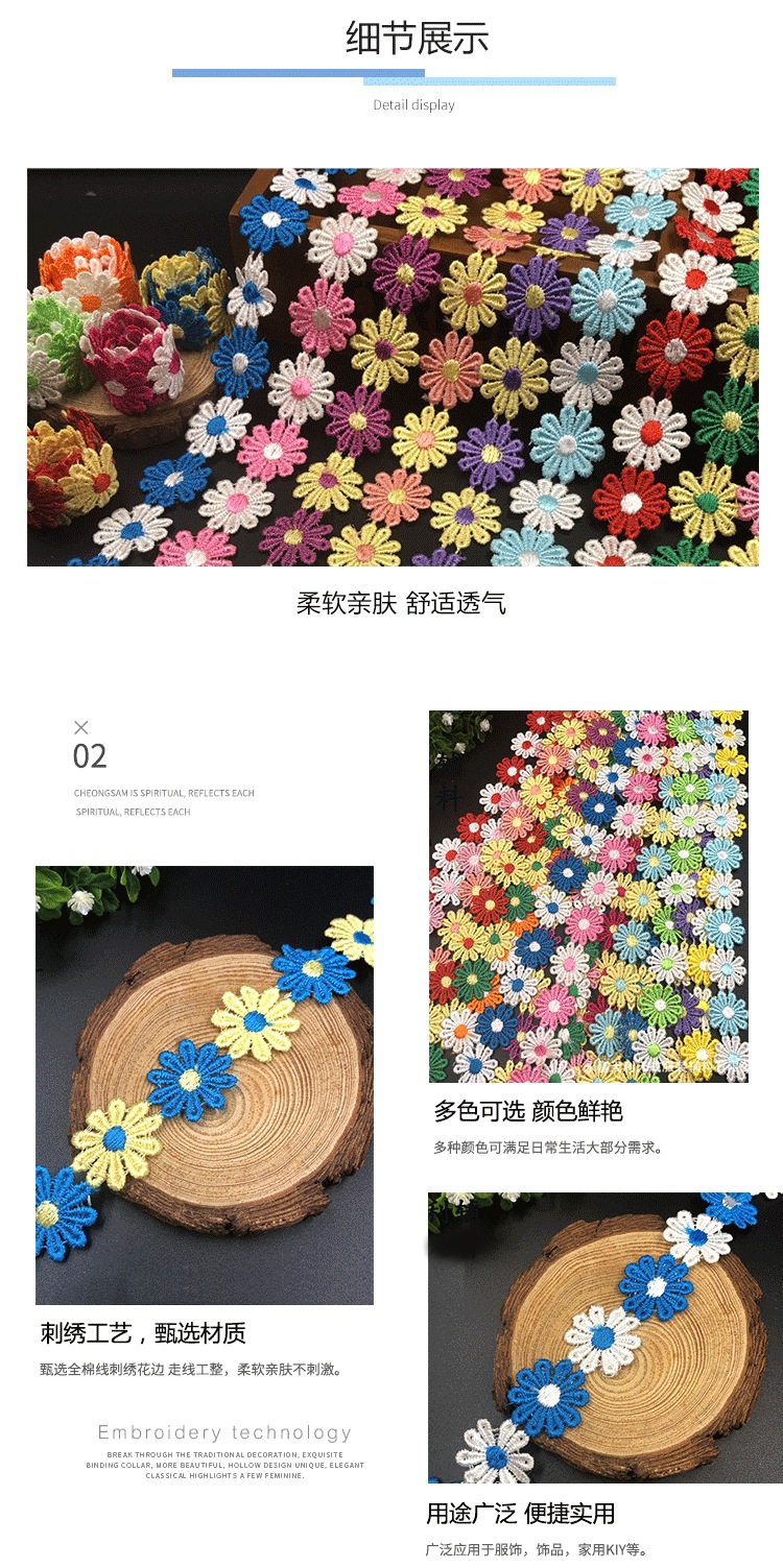 RY color encaje flores pequeñas accesorios hecho a mano bricolaje encaje correa lateral ropa cortina bordado tela material decoración