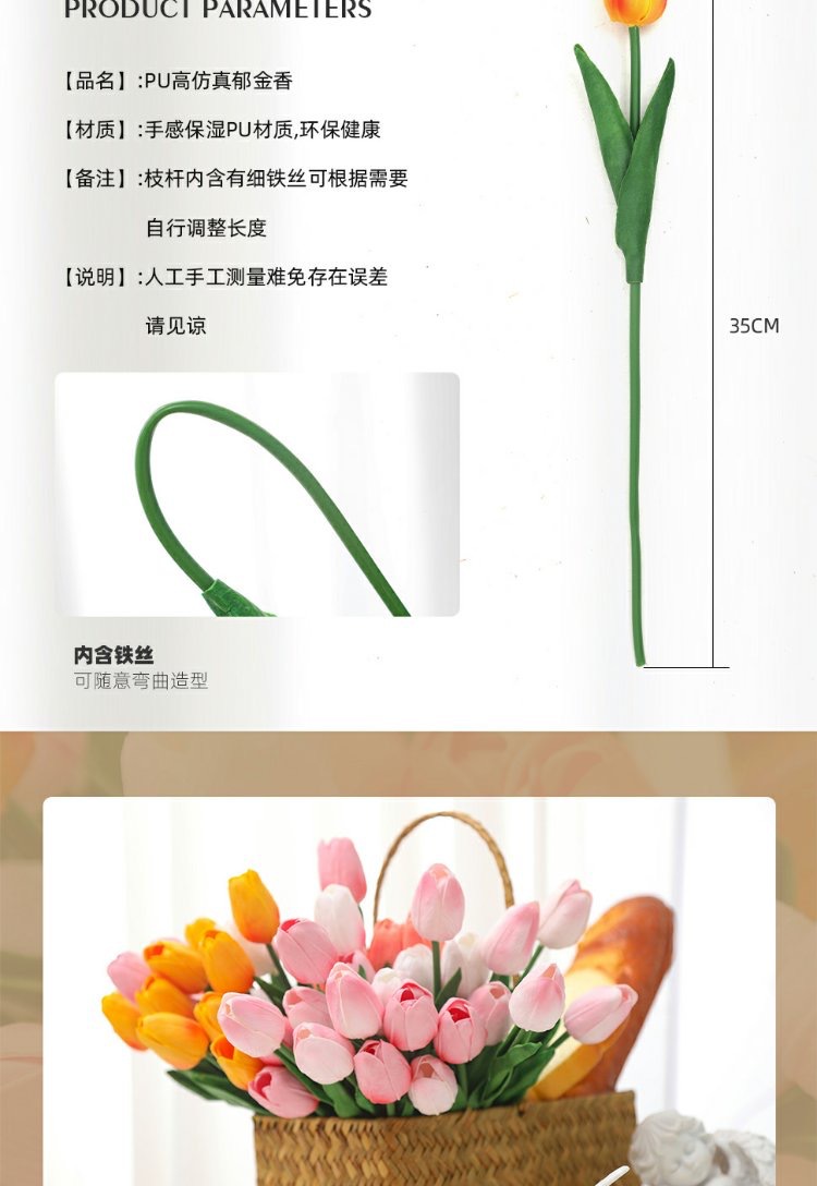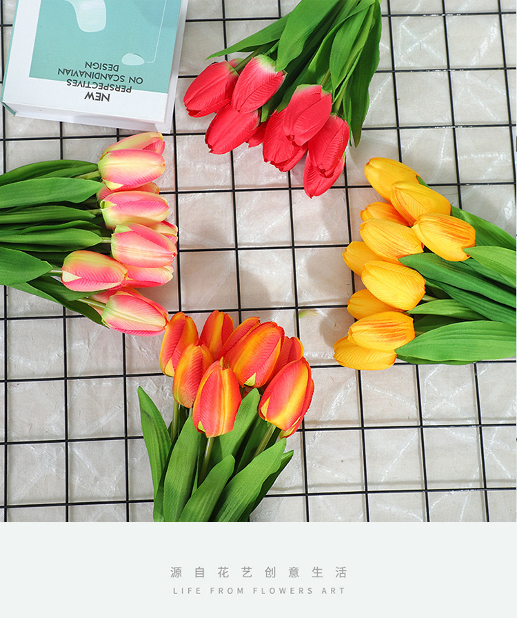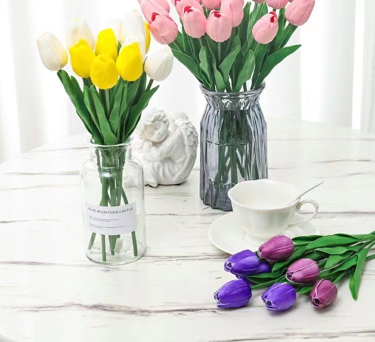 Tulipanes de simulación PU de alta gama flores de simulación de flores de una sola rama sensación de humedad decoración de mesa de comedor en el hogar flores falsas