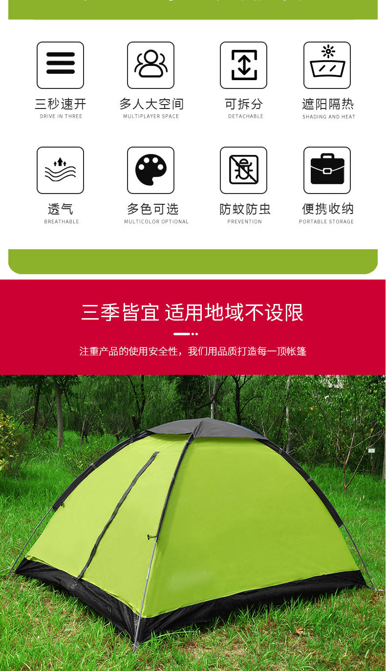 Tienda de campaña camping al aire libre 2-3 personas en la naturaleza, protección contra la lluvia, yurtas engrosadas portátiles, protección solar en la playa, equipo de camping a mano