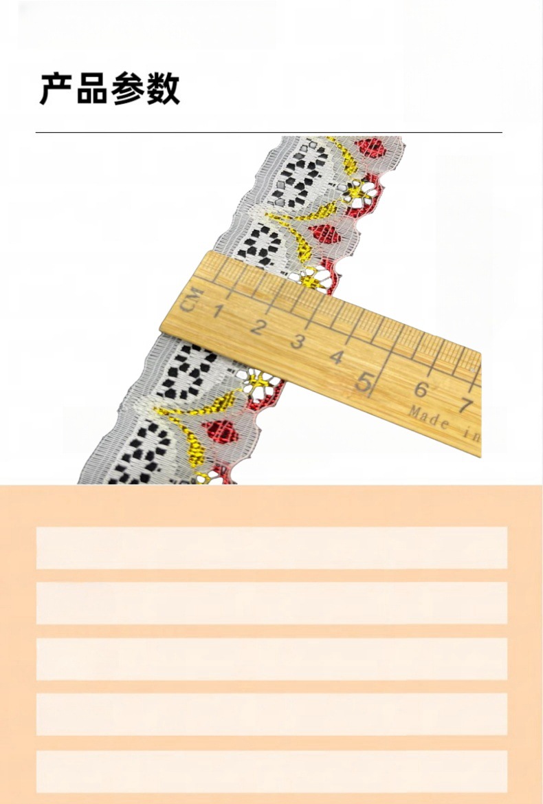 | Número de artículo | Inventario de 3 cm de estilo nacional de encaje sin bala ropa infantil encaje DIY muñeca accesorios de vestido de boda |