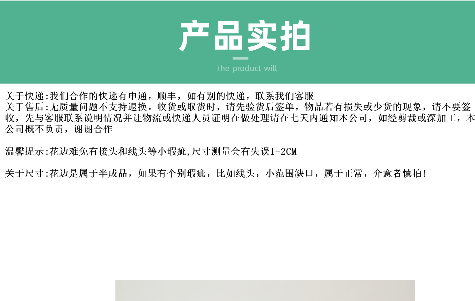 | ámbito de aplicación | Ropa de mujer, tocado, vestido, decoración, cortinas, artesanía, vestido de boda, ropa, ropa infantil, accesorios, accesorios, textiles para el hogar, ropa, falda, artículos textiles para el hogar, ventanas, otros |