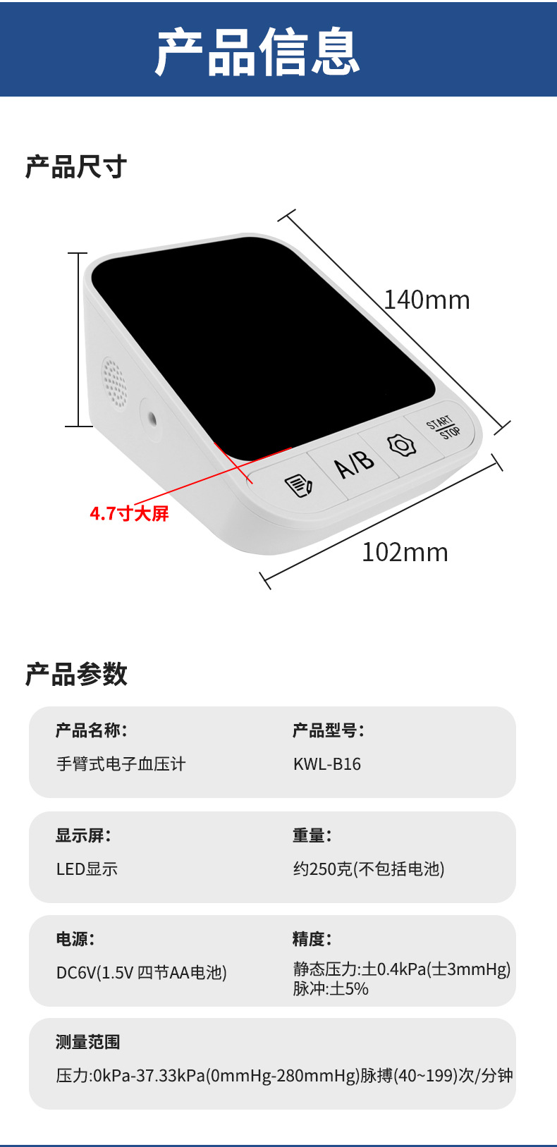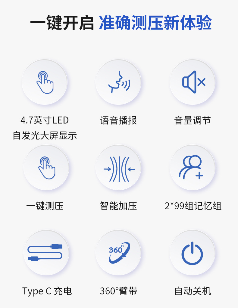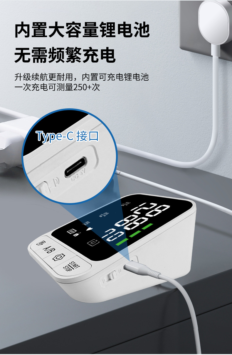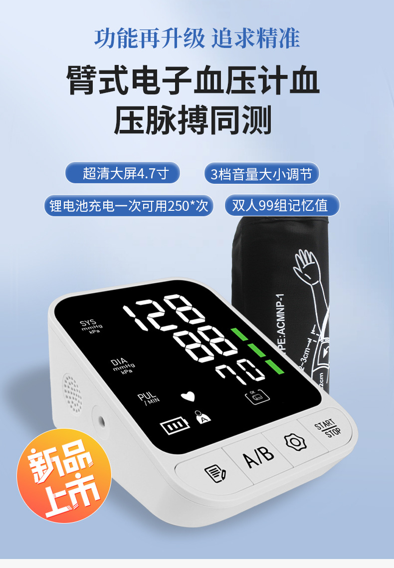Comercio exterior nuevo tipo de gran pantalla esfigmomanómetro de brazo esfigmomanómetro de medición de volumen ajustable esfigmomanómetro médico de alta precisión