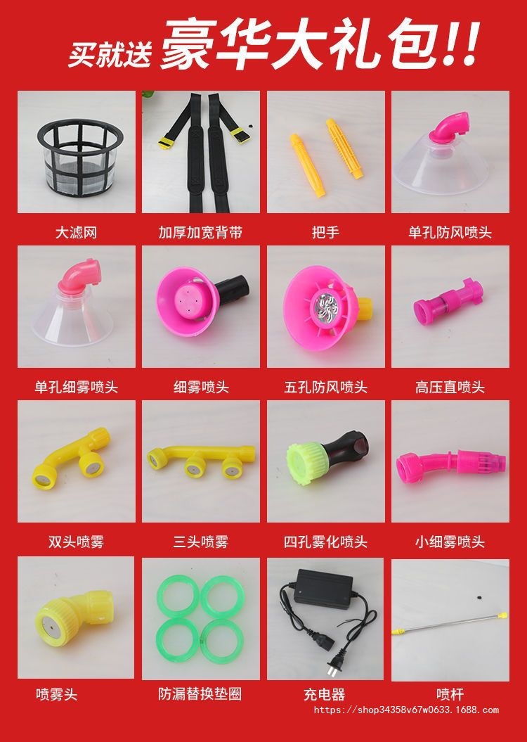 | Especificaciones | 16 litros de interruptor de velocidad fija (interruptor único) batería / alta configuración, 16 litros de regulación de velocidad del cuerpo (interruptor doble) batería / alta configuración, 18 litros de regulación de velocidad del cuerpo (interruptor doble) batería / alta configuración, 20 litros de regulación de velocidad del cuerpo (interruptor doble) batería / alta configuración, 16 litros de regulación de velocidad del mango (interruptor doble) batería / alta configuración, 16 litros de regulación de velocidad del mango (interruptor doble) batería / alta configuración, 18 litros de regulación de velocidad del mango (interruptor doble) batería / alta configuración, 18 litros de interruptor de manija (tres interruptores) batería de almacenamiento / equipo alto, 20 litros de control de velocidad de manija (doble interruptor) batería de almacenamiento / equipo alto, 20 litros de interruptor de manija (tres interruptores) batería de almacenamiento / equipo alto, 16 litros de control de velocidad de cuerpo (doble interruptor) batería de litio / equipo alto, 16 litros de control de velocidad de manija (doble interruptor) batería de litio / equipo alto, 16 litros de control de velocidad de manija (tres interruptores) batería de litio / equipo alto, 18 litros de control de velocidad de cuerpo (doble interruptor) batería de litio / equipo alto, 18 litros de control de velocidad del mango (doble interruptor) batería de litio / conjunto superior, 18 litros de control de velocidad (tres interruptores) batería de litio / conjunto superior, 20 litros de control de velocidad del cuerpo (doble interruptor) batería de litio / conjunto superior, 20 litros de control de velocidad del mango (doble interruptor) batería de litio / conjunto superior, 20 litros de control de velocidad (tres interruptores) sin batería / conjunto superior, 20 litros de control de velocidad (tres interruptores) batería de litio / conjunto superior, 18 litros de control de velocidad del mango (tres interruptores) batería de litio / conjunto superior, 18 litros de tres interruptores (litio 10 amperios) bomba de alto voltaje, 20 litros de tres interruptores (litio 10 amperios) bomba de alta presión 18 litros de tres interruptores (litio 12 amperios) bomba de alta presión 20 litros de tres interruptores (litio 12 amperios) bomba de alta presión 18 litros de tres interruptores (litio 14 amperios) bomba de alta presión 18 litros de tres interruptores (litio 14 amperios) bomba de alta presión 18 litros de tres interruptores (litio 16 amperios) bomba de alta presión 20 litros de tres interruptores (litio 16 amperios) bomba de alta presión, 18 litros de tres interruptores (litio 18 amperios) con bomba de alta presión, 20 litros de tres interruptores (litio 18 amperios) con bomba de alta presión, 18 litros de tres interruptores (litio 20 amperios) con bomba de alta presión, 20 litros sin interruptor (sin batería de litio) sin cubierta de bomba de agua, 20 litros de tres interruptores (litio 20 amperios) con bomba de alta presión, 18 litros de tres interruptores (litio 25 amperios) con bomba de alta presión, 18 litros de tres interruptores (litio 30 amperios) bomba de alta presión 20 litros de tres interruptores (litio 30 amperios) bomba de alta presión 18 litros de tres interruptores (litio 60 amperios) bomba de alta presión 20 litros de tres interruptores (litio 60 amperios) bomba de alta presión |