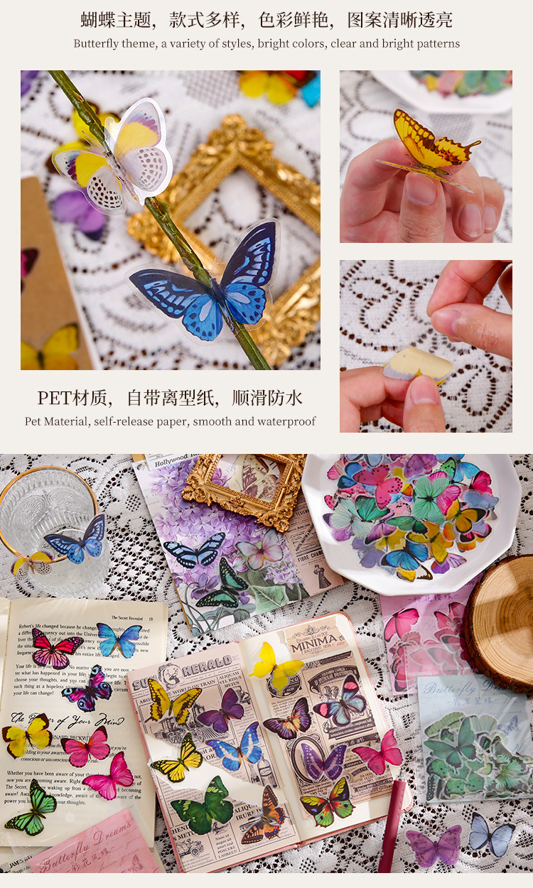 Japonés lindo dibujos animados retro mariposa pegatinas ins chica diario material decorativo patrón DIY pequeñas pegatinas