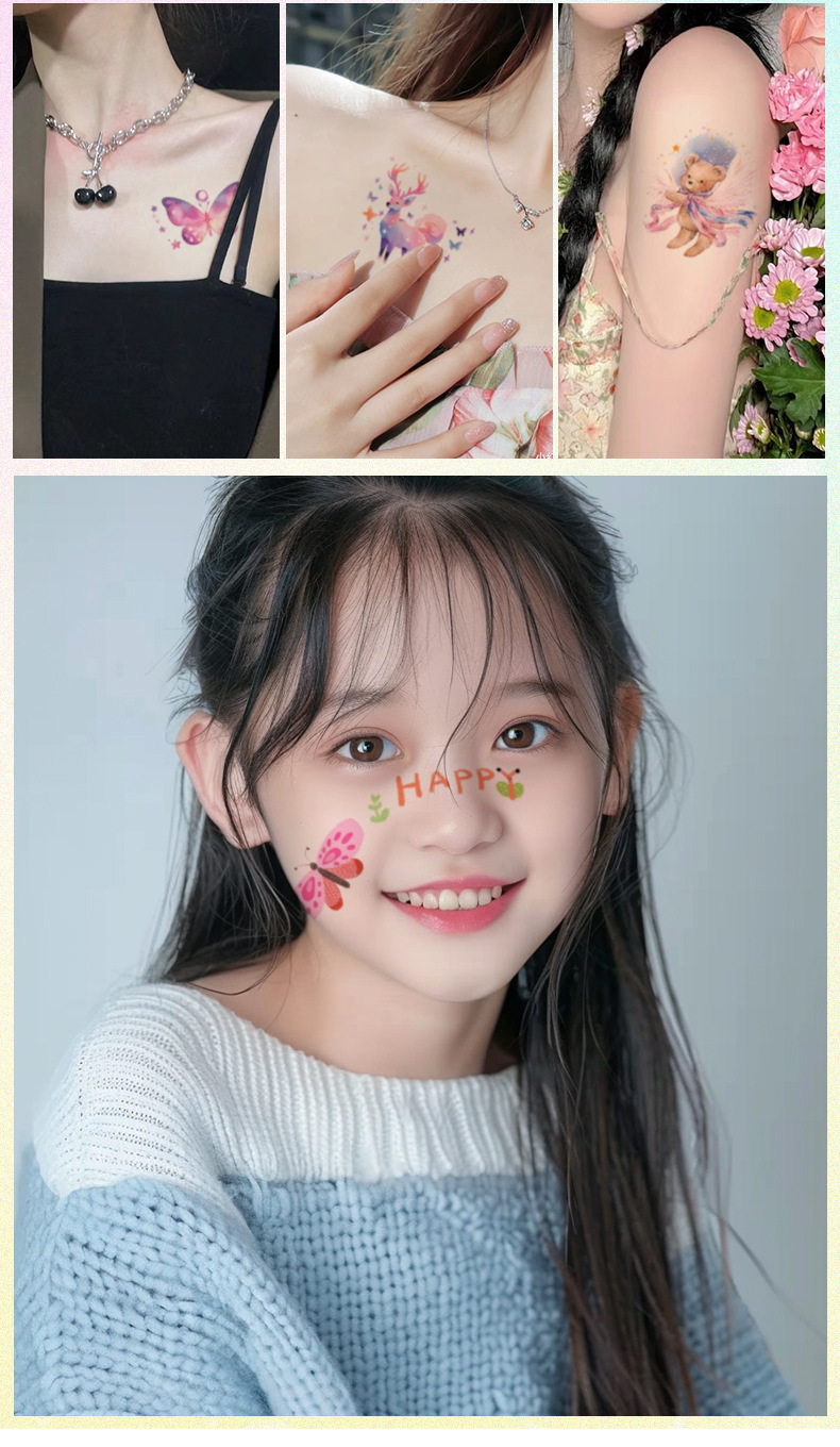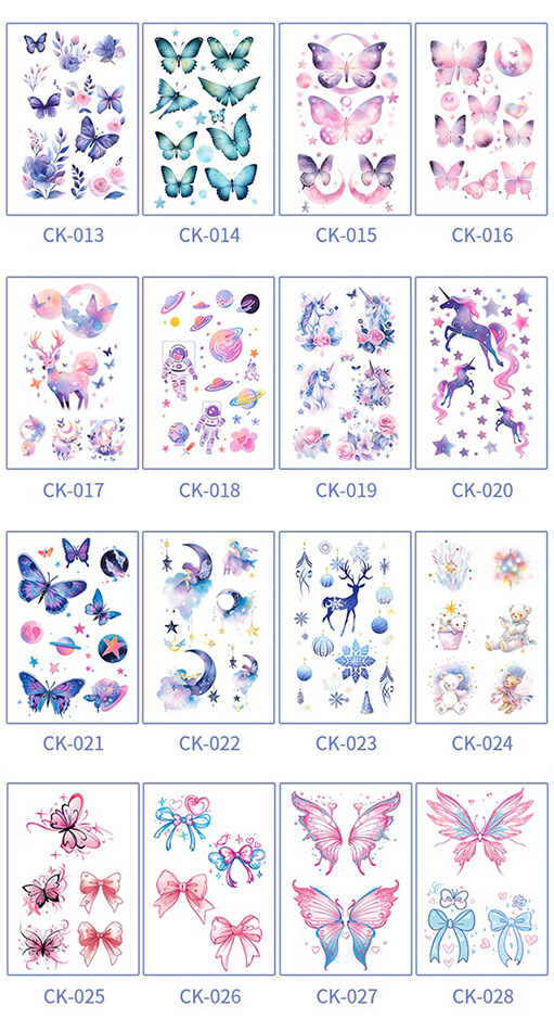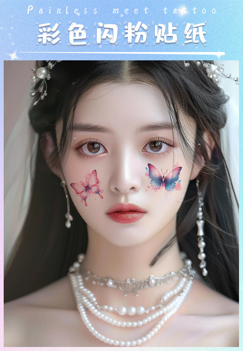 Polvo brillante mariposa cara pegatinas de tatuaje hadas lavable impermeable duradero lindo unicornio ciervo luna estrellas planeta