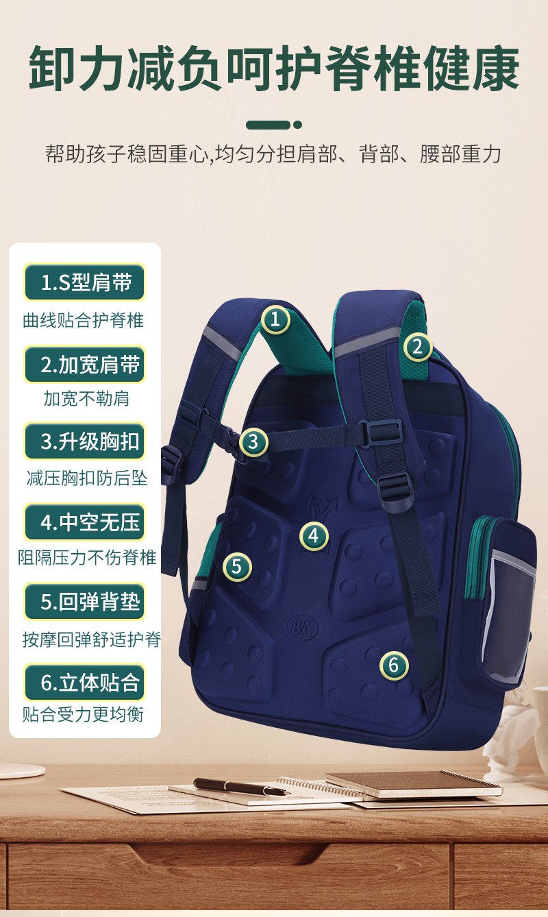 Nueva mochila de estudiantes de primaria para hombres, bolsas de estudiantes de gran capacidad, mochila infantil resistente al desgaste de grado 1 - 3 - 6