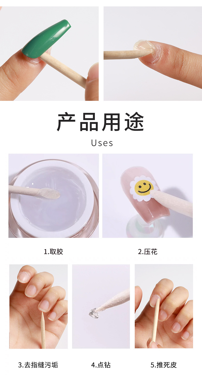 Cross-border manicura naranja palo multifuncional 100 piezas un paquete de doble cabeza de belleza palo de madera palo de haya en stock al por mayor