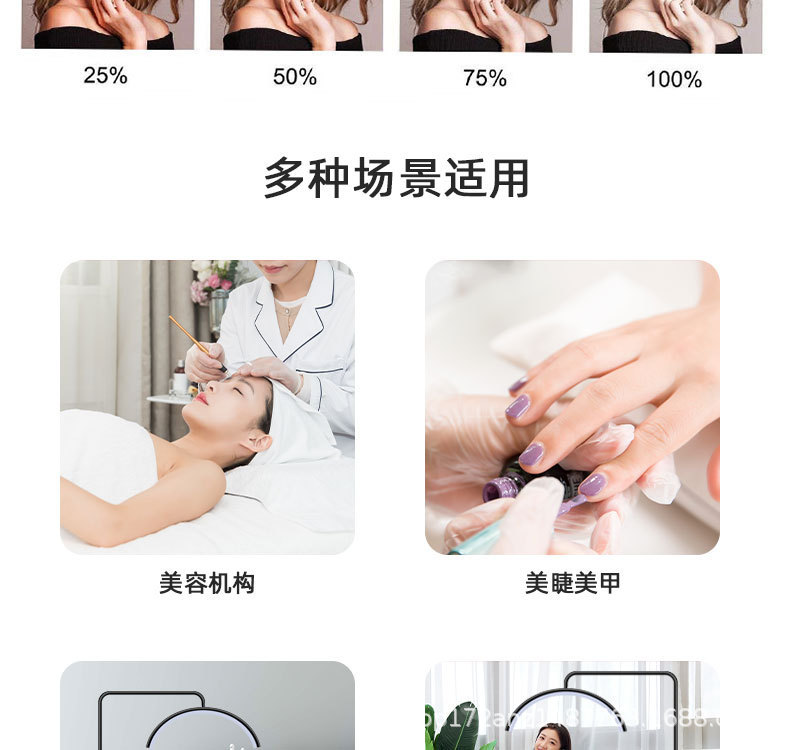 Lámpara de media luna para belleza, lámpara para pestañas de tatuaje, lámpara de pie sin sombras para protección ocular, lámpara para uñas, lámpara LED para uñas y tatuajes de pestañas