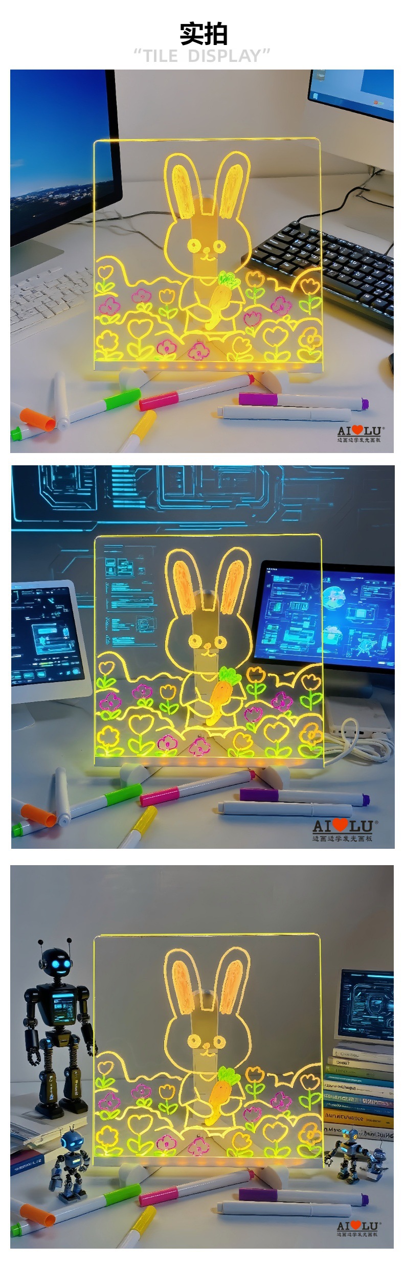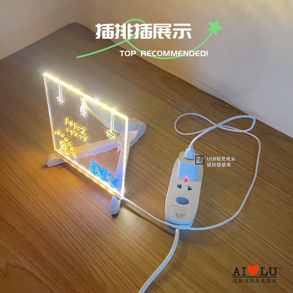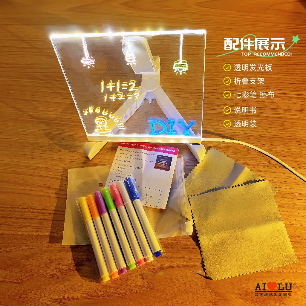 Tablero de Dibujo Luminoso Pintado a Mano para Niños, Borrable, Sin Polvo, con Soporte Plegable, Luz Nocturna, Tablero de Mensajes, Juguete Pequeño