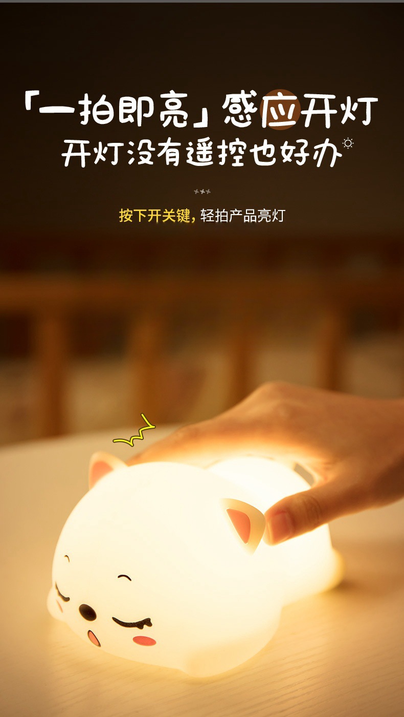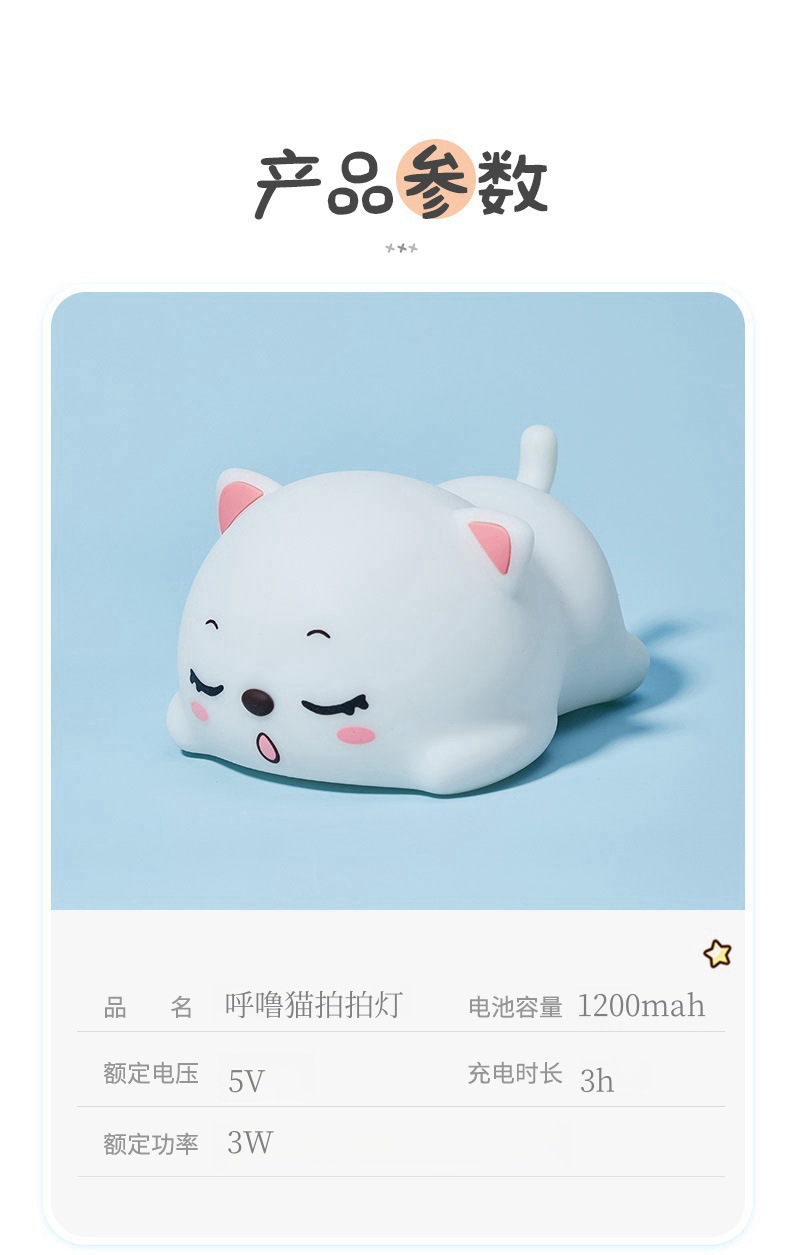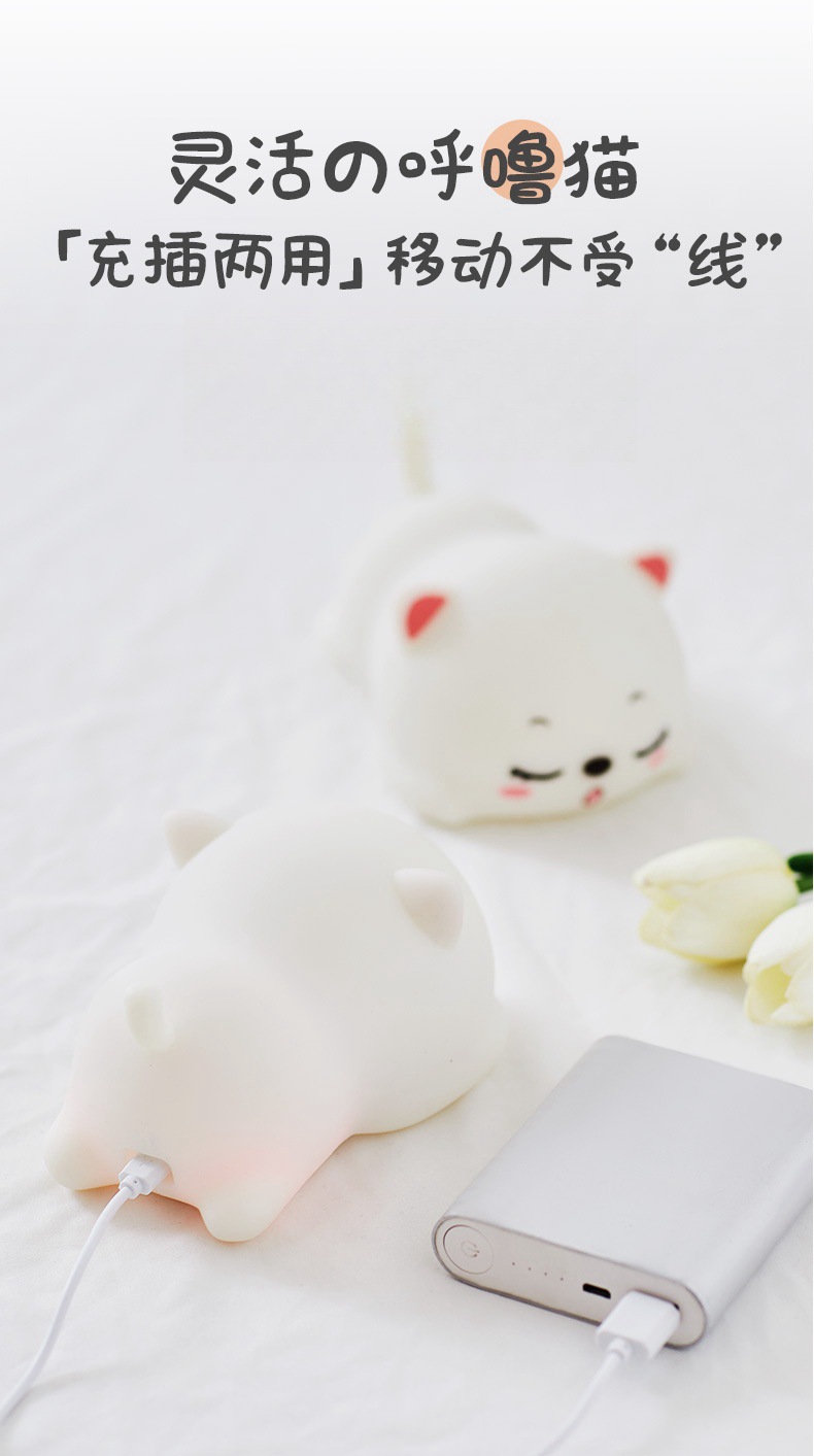 Lámpara de silicona de gato roncando LED recargable colorida lámpara creativa de regalo de cumpleaños cabezal de cama para dormir lámpara de noche