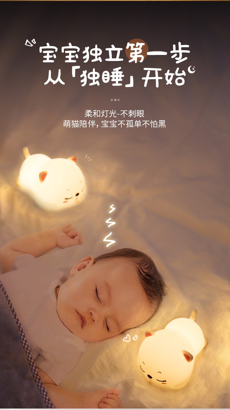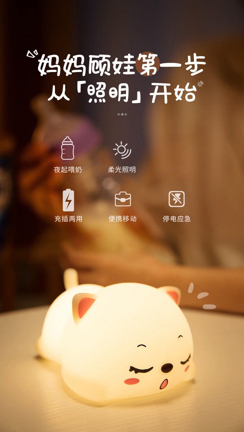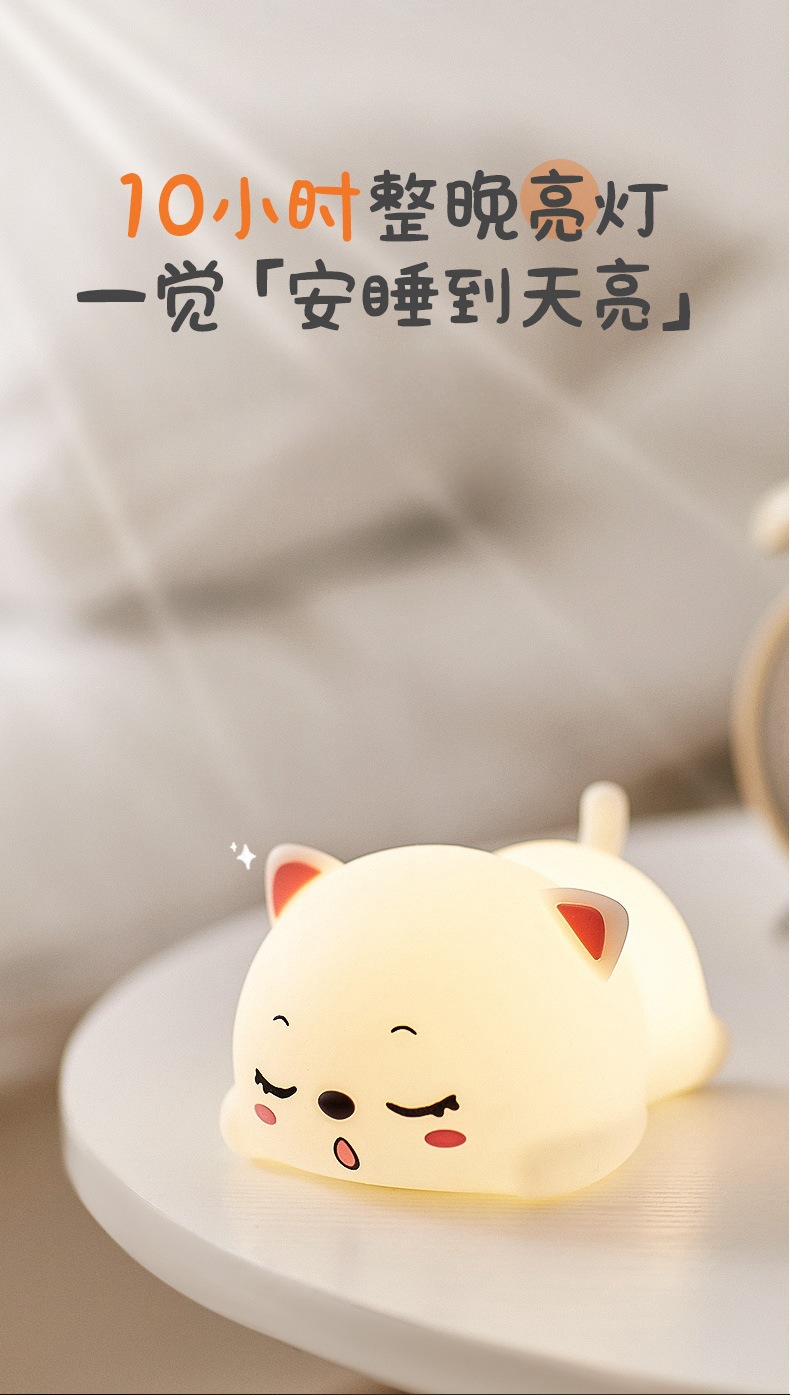 Lámpara de silicona de gato roncando LED recargable colorida lámpara creativa de regalo de cumpleaños cabezal de cama para dormir lámpara de noche
