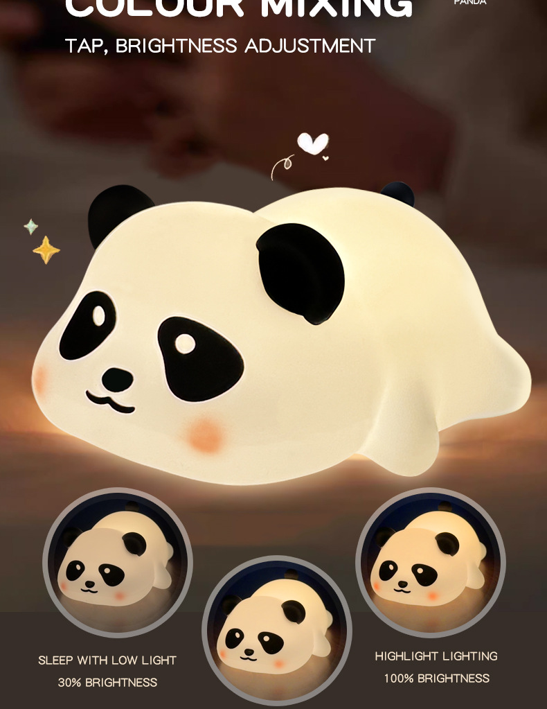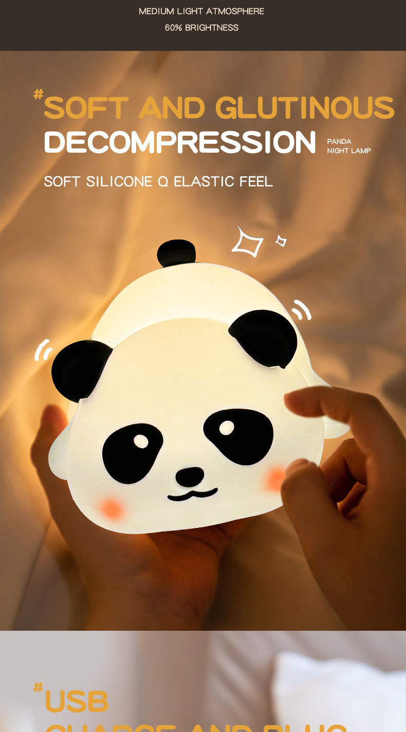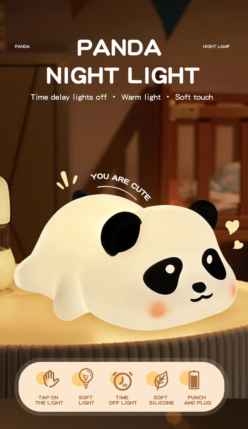 Explosiones transfronterizas bater lámparas de silicona lámpara de noche panda lámpara de noche grasa tiempo de carga regalo atmósfera lámpara de dormitorio