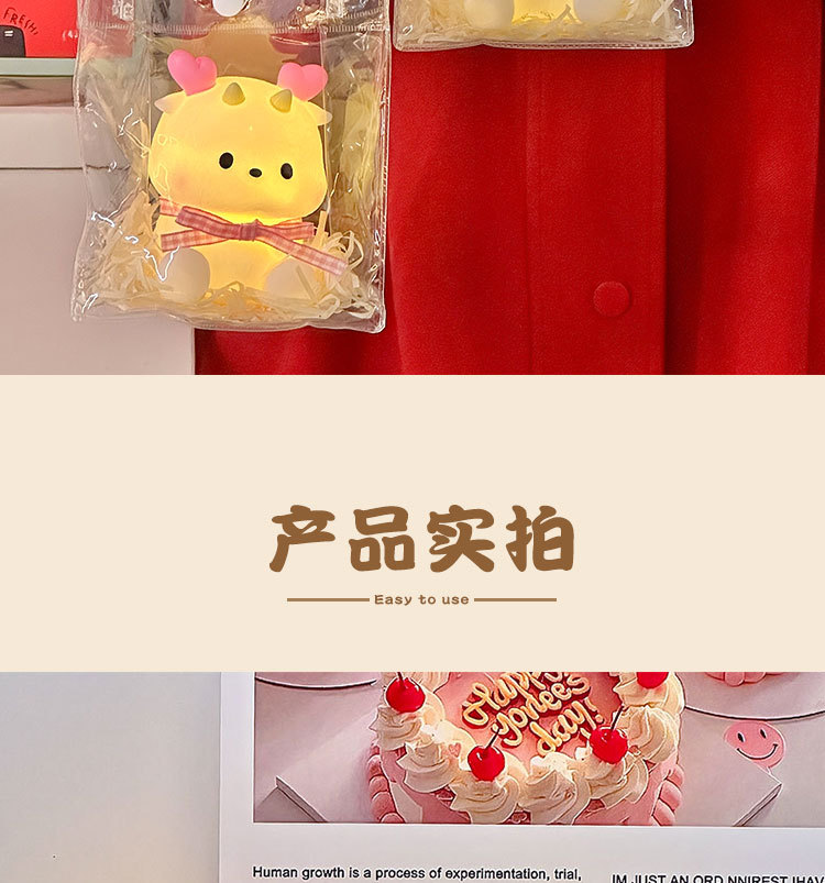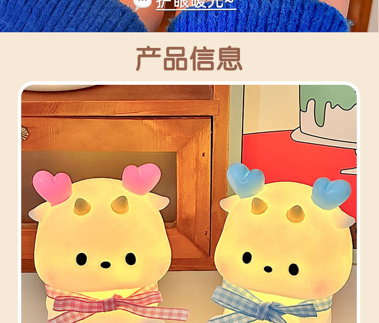 Luz nocturna de dragón pequeño de dibujos animados, lámpara de noche para dormitorio, luz ambiental, juguetes luminosos para niños, suministro al por mayor