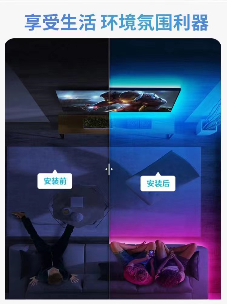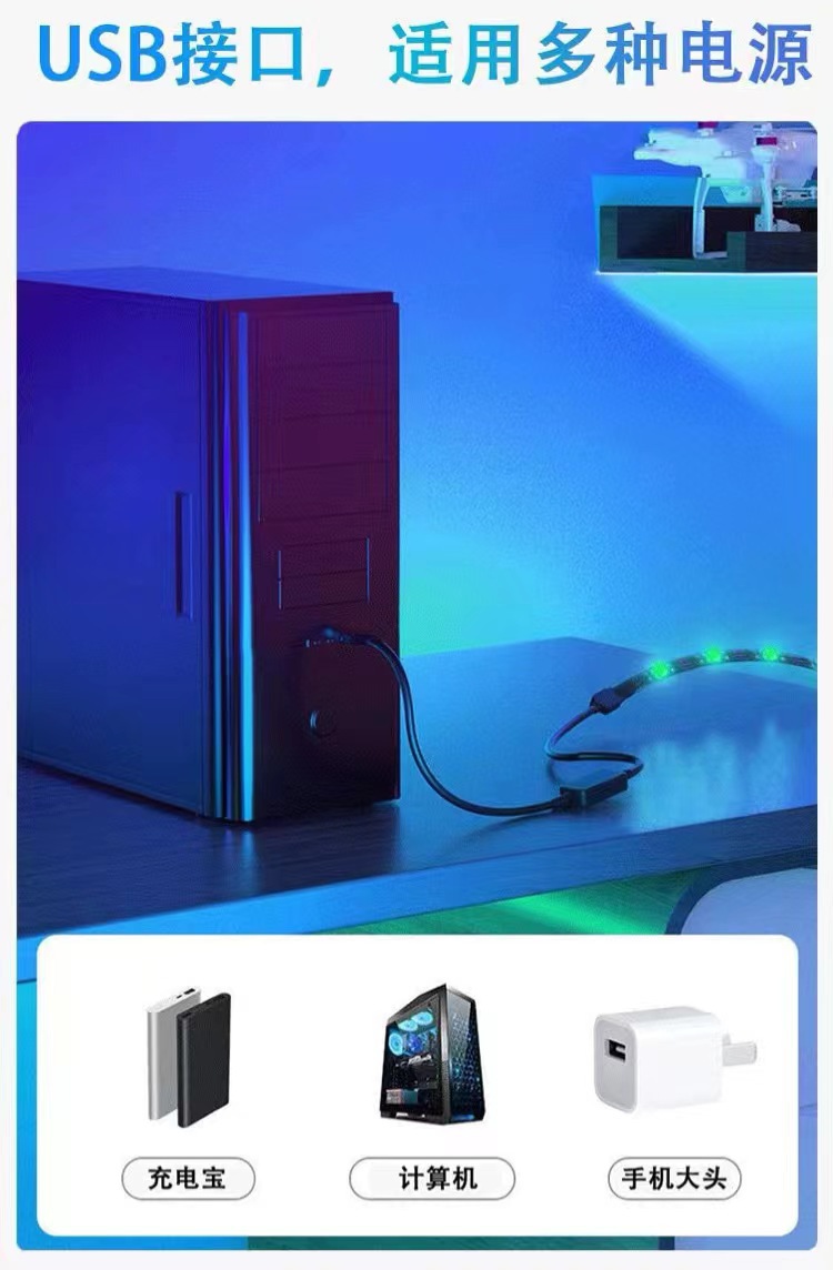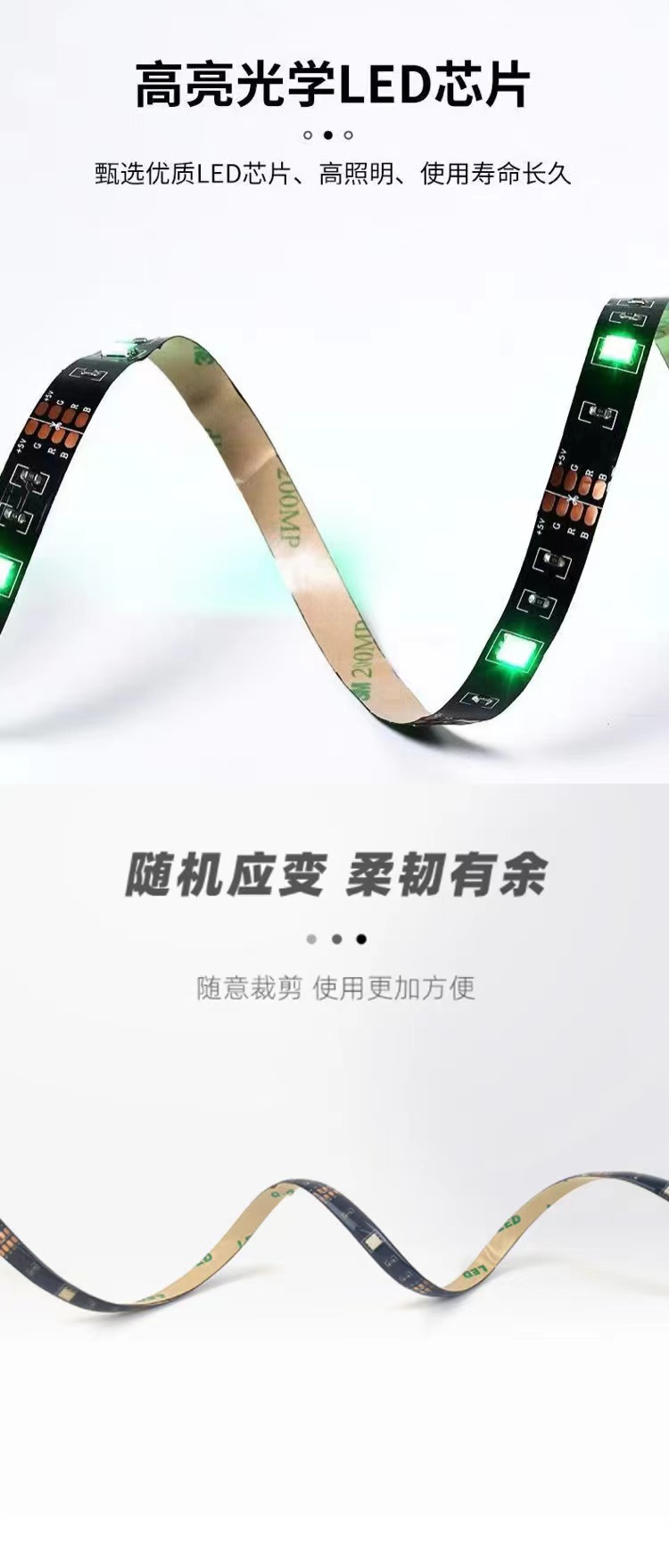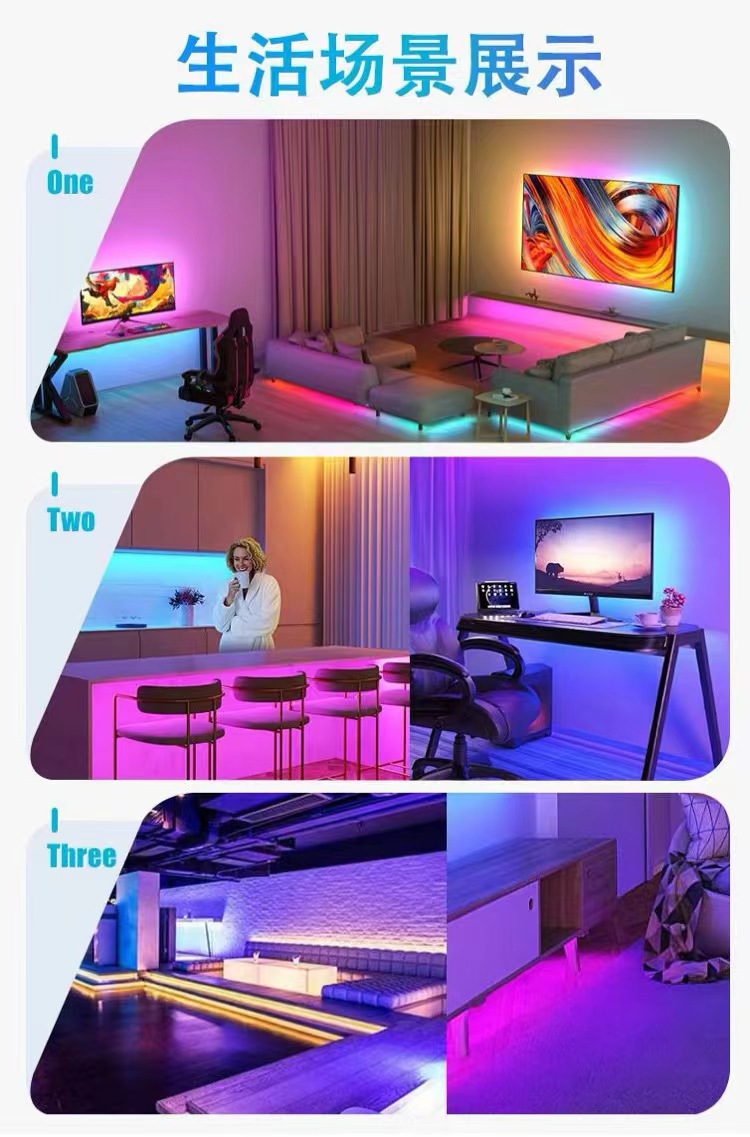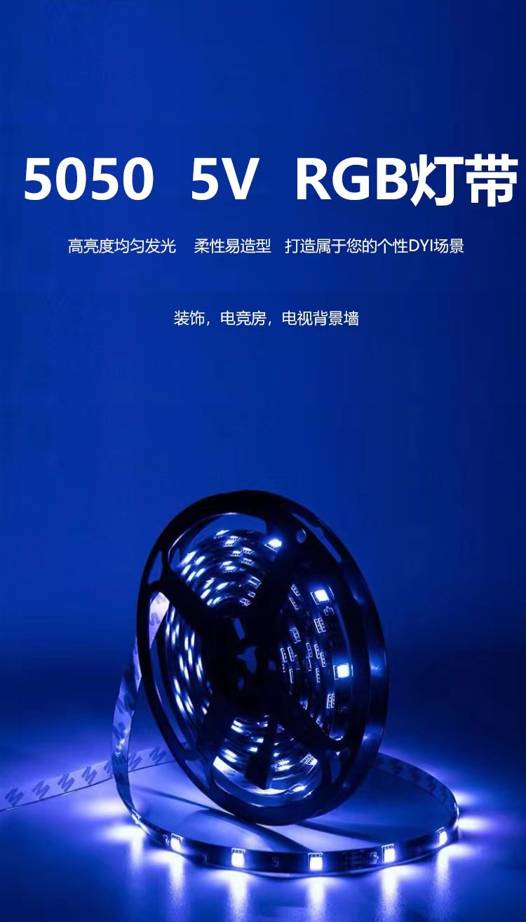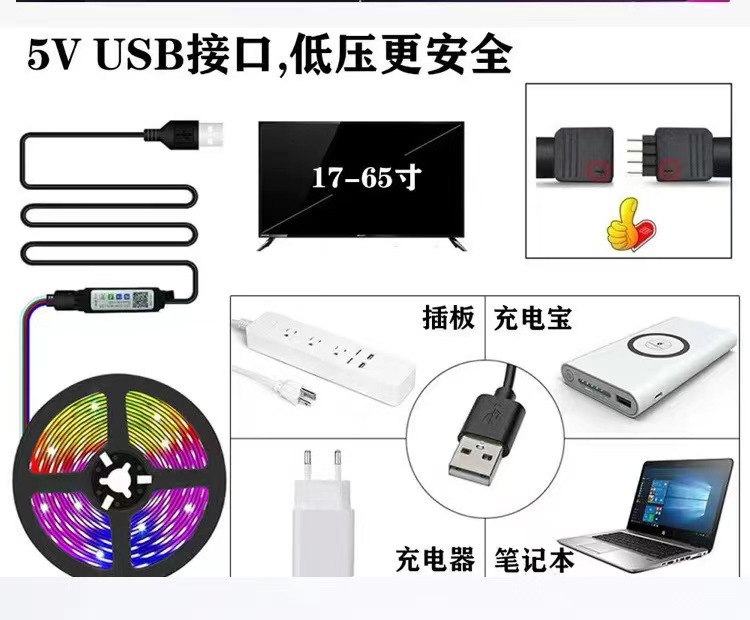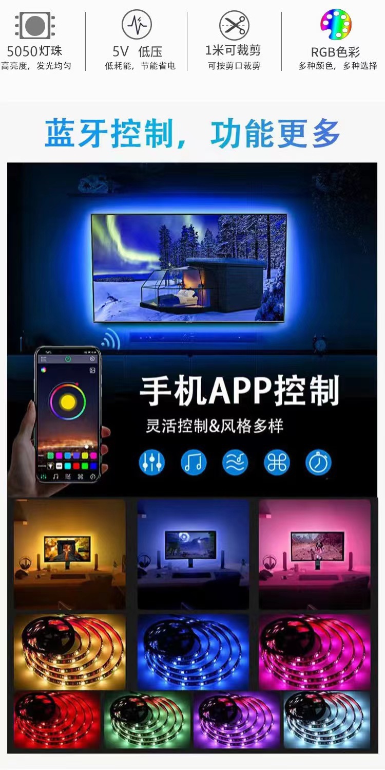Tira de luces 5050 colorida, control inteligente por APP, 5V bajo voltaje RGB, tira de luces de ambiente, control remoto Bluetooth e infrarrojo
