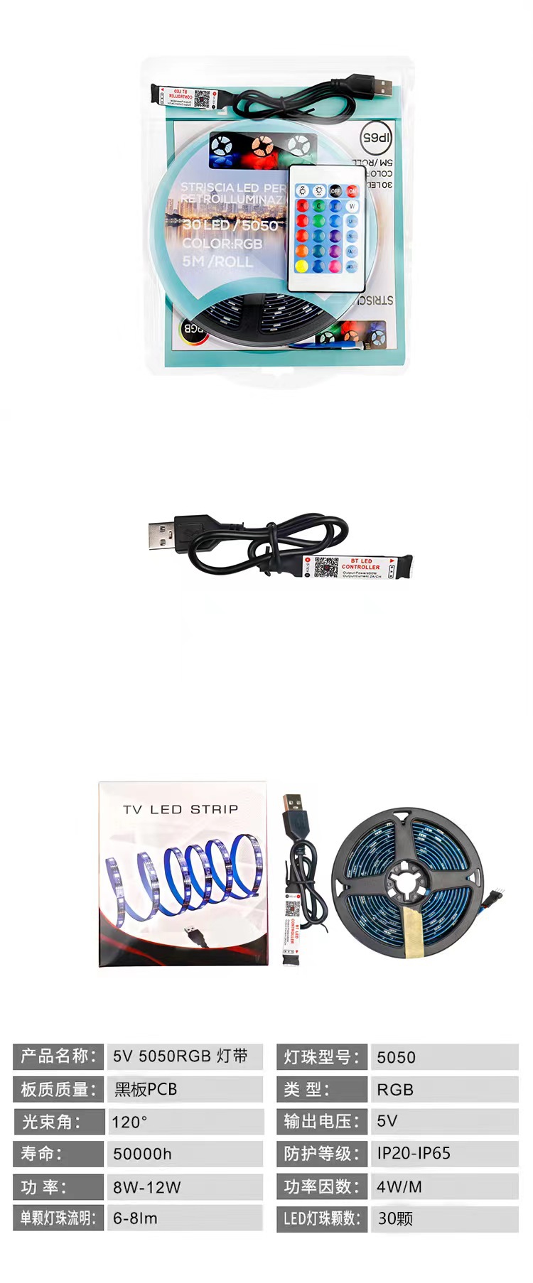 5V - 5050 - RGB - 30 lámparas - 24 teclas - infrarrojos + Bluetooth - goteo de pegamento 2 metros