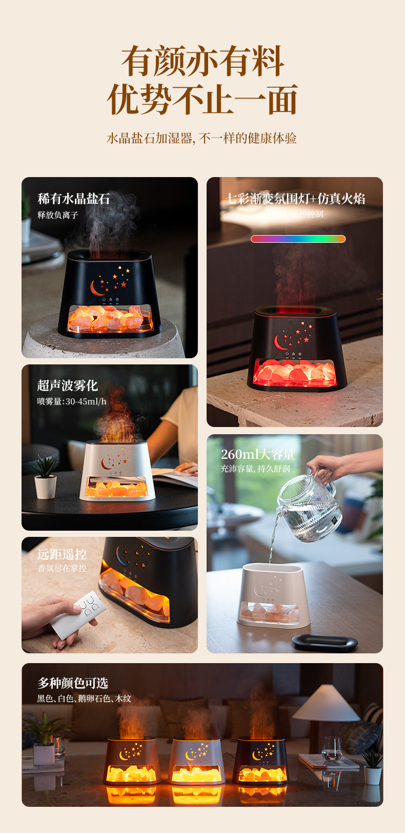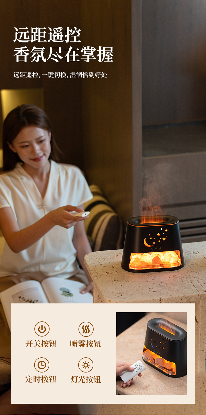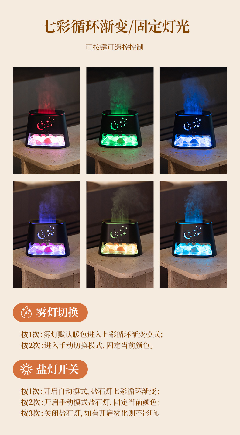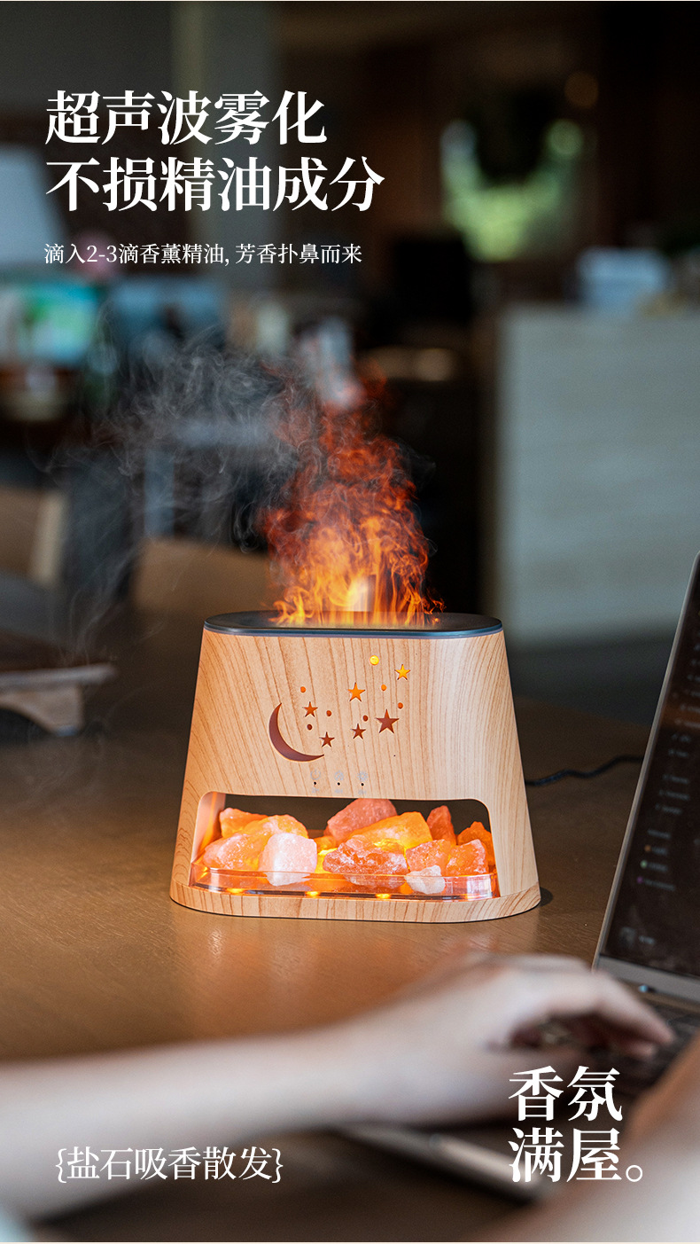 Transfronterizos nueva máquina de fragancia de llama de piedra salina de escritorio USB colorido atmósfera gradiente máquina de fragancia de aceite esencial