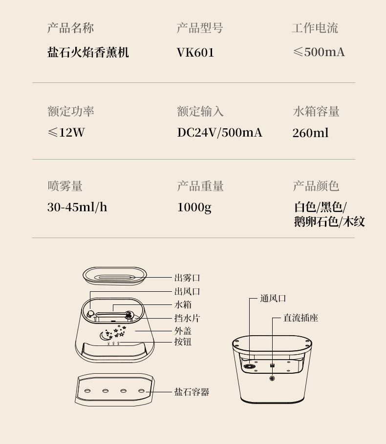 | Número de artículo | VK601 máquina de fragancia de piedra de sal |