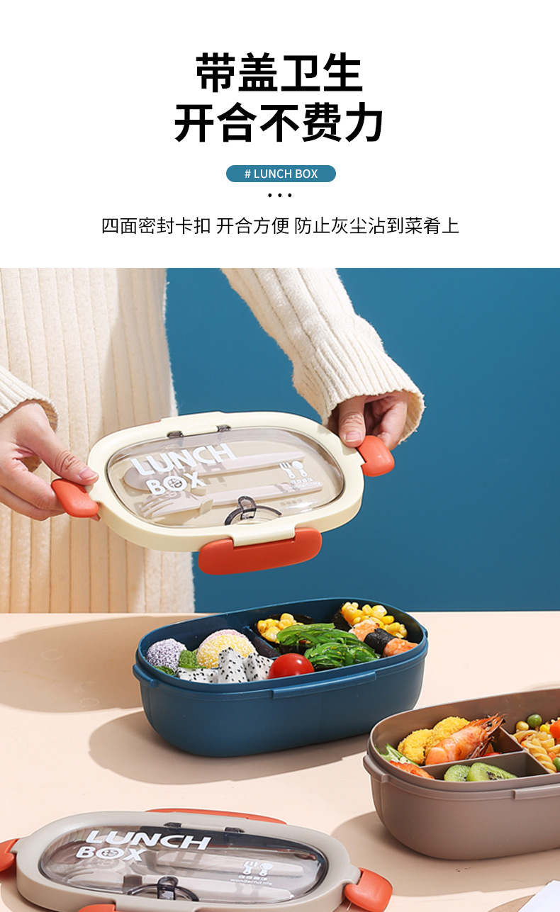 Caja de almuerzo de estilo coreano elíptico simple para estudiantes de oficina, caja de almuerzo portátil, platos divididos con tazas de agua, set de cubiertos