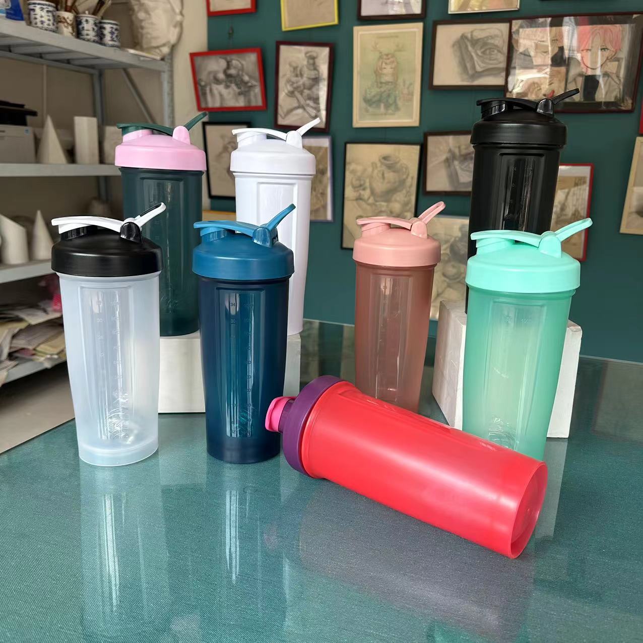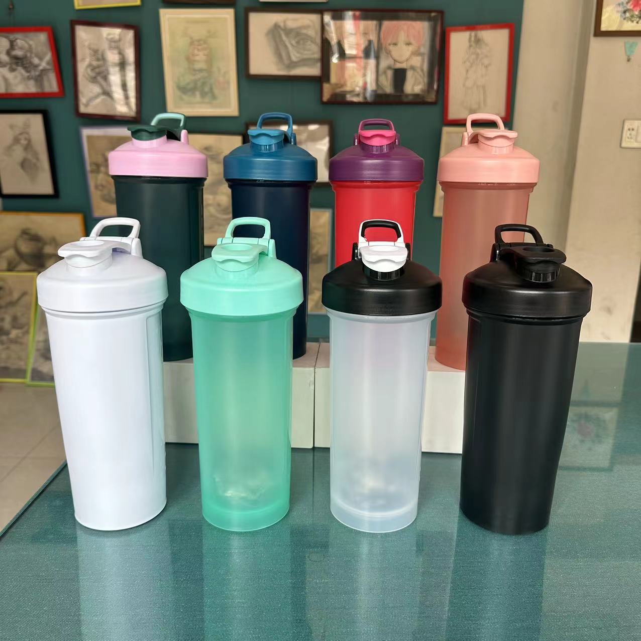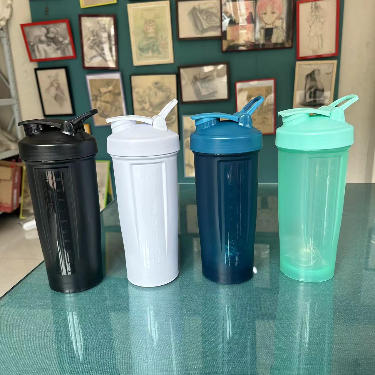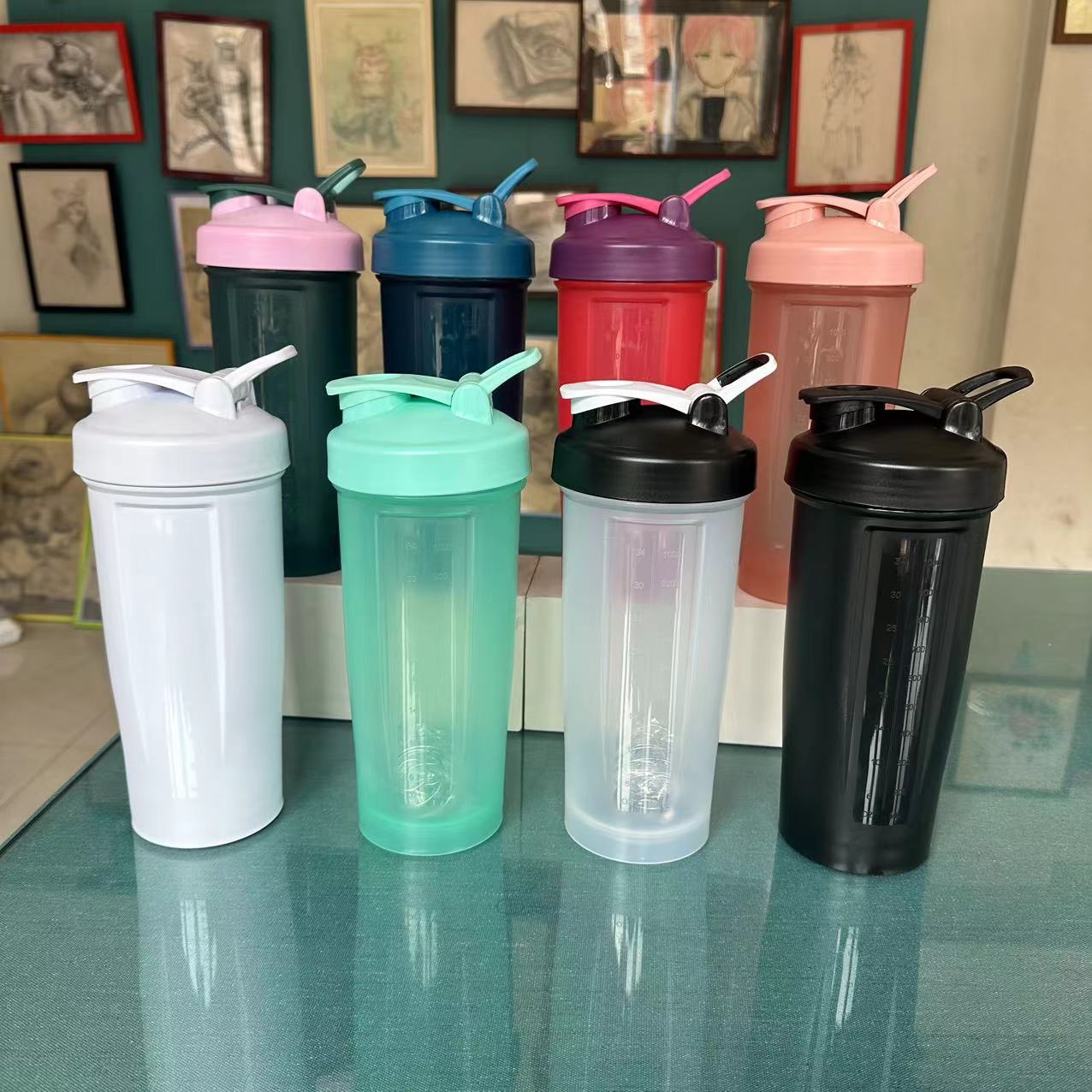 1000 ml batido de proteína en polvo batido gran capacidad ejercicio fitness portátil con taza de agua graduada botella de agua de color