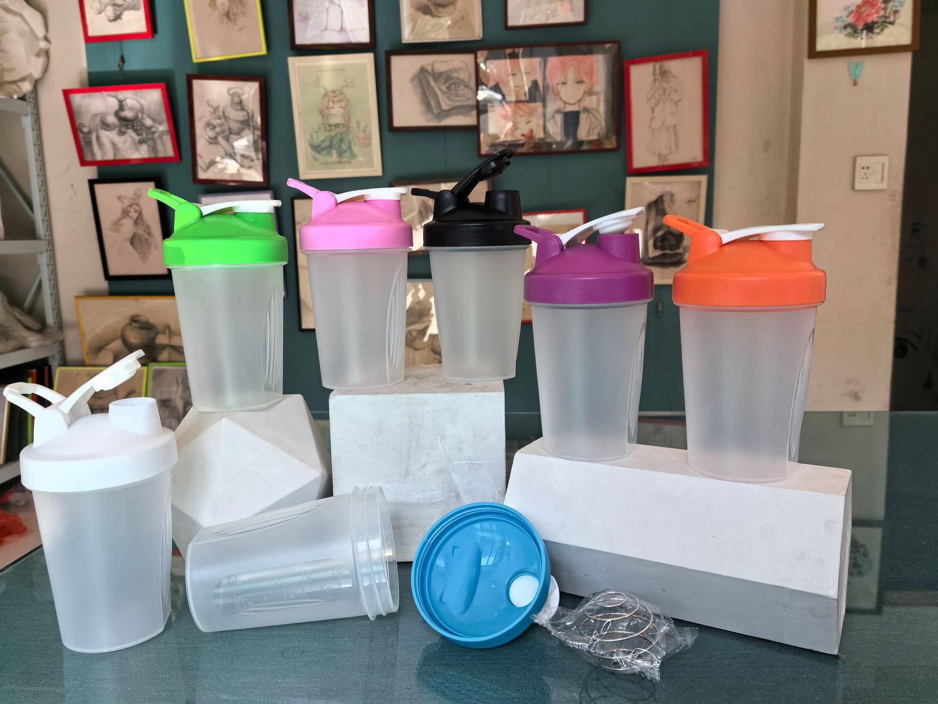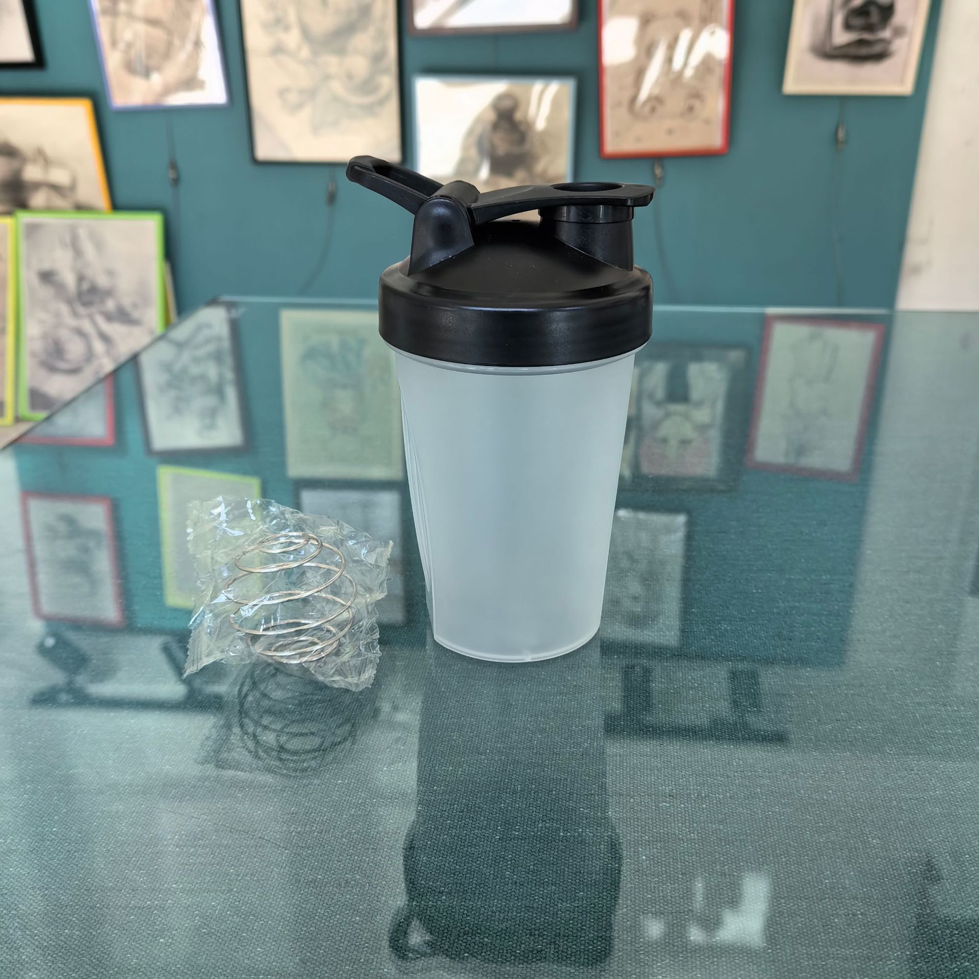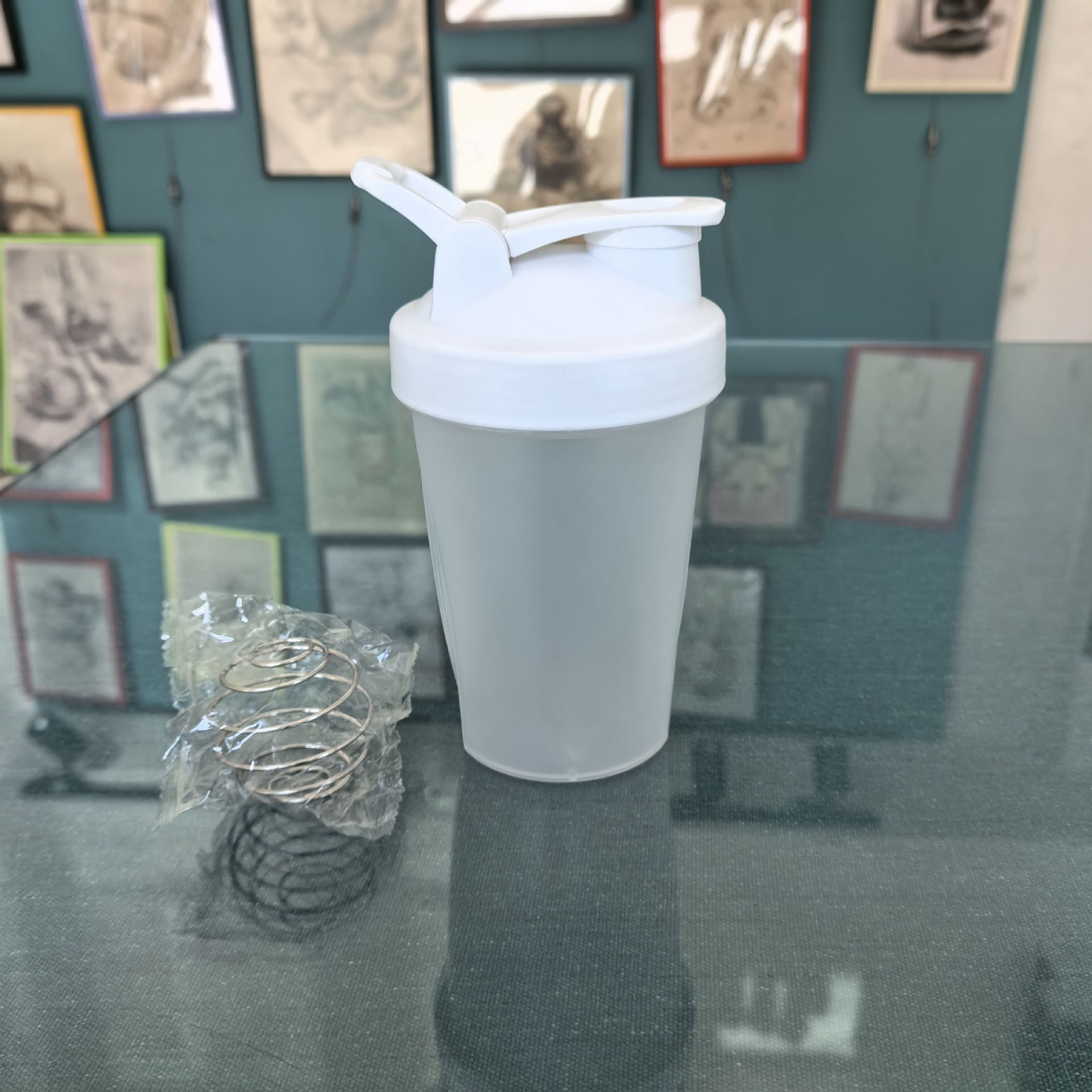 400 ml taza agitadora de proteína en polvo con bola de agitación taza de batido con asa de escala regalo deportivo taza de agua
