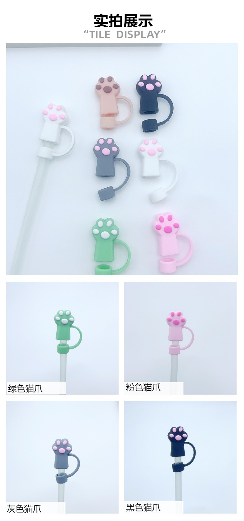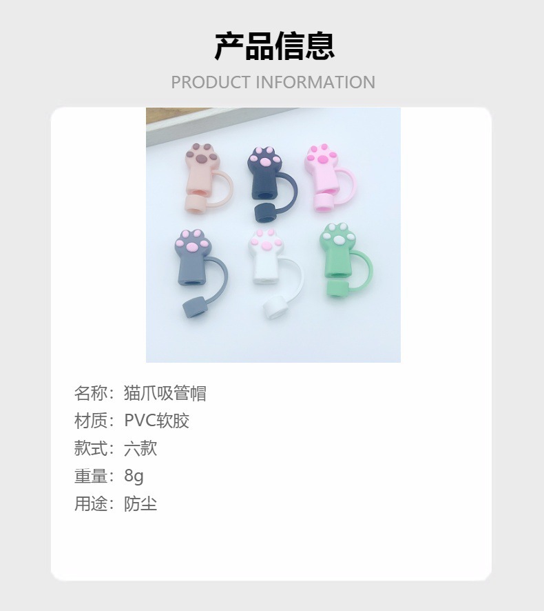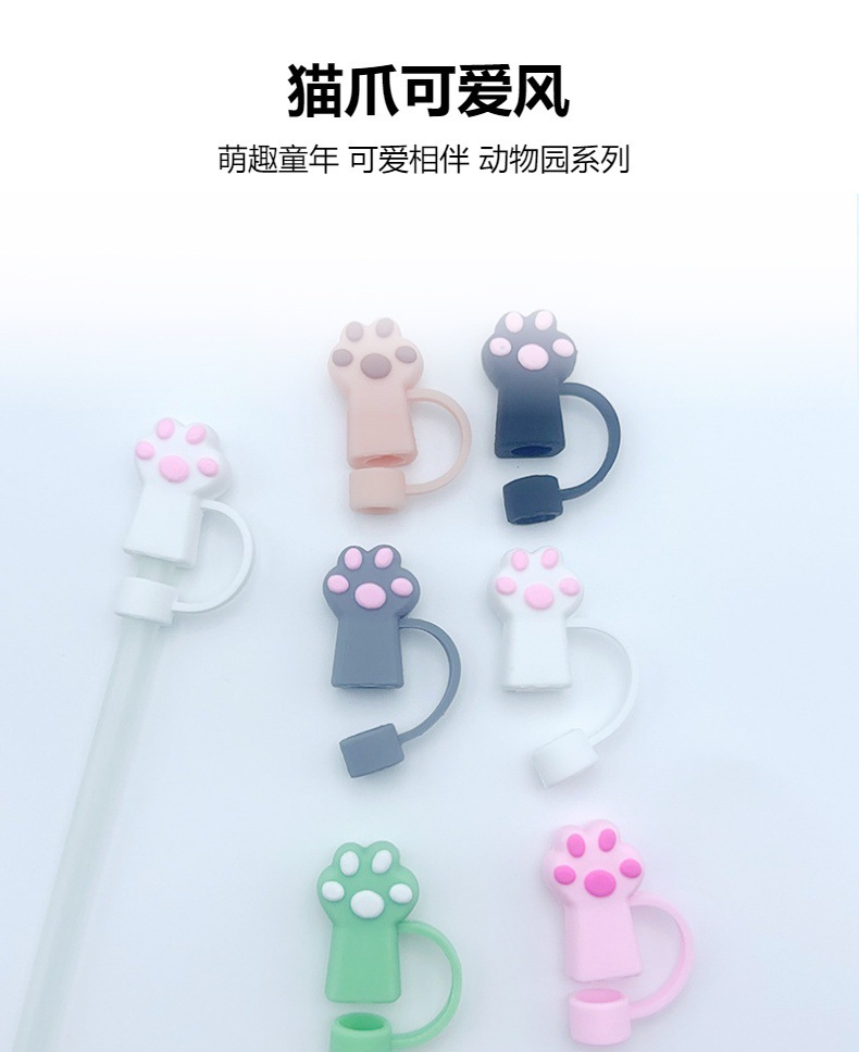 Comercio electrónico transfronterizo garra de gato de dibujos animados lindo tapa de pajita de gran diámetro 10mm tapón de pajita creativo a prueba de polvo al por mayor