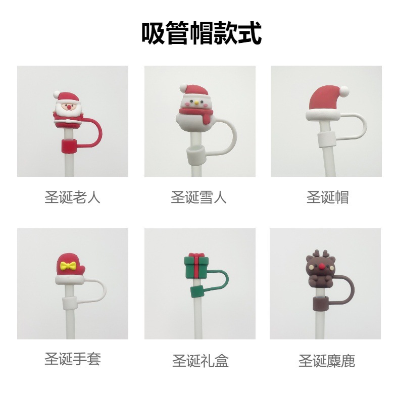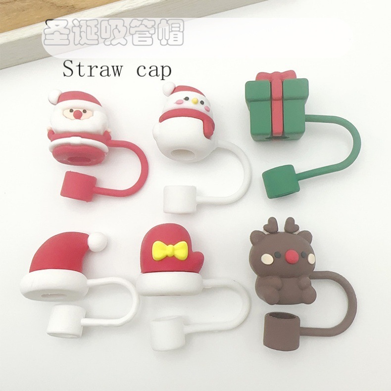 Nuevo transfronterizo de 10 mm tapa de paja de Navidad de alce goma blanda tapa de paja de dibujos animados de Navidad tapa de polvo tapa de paja