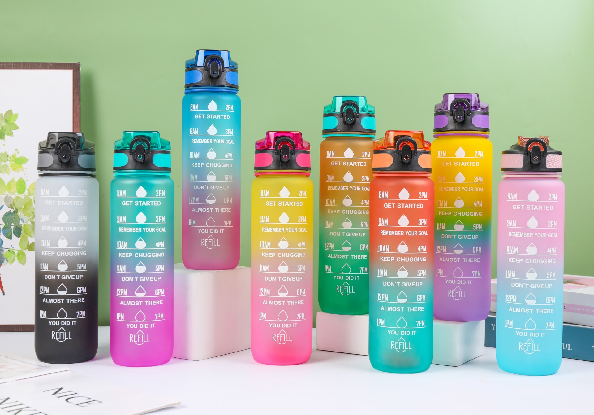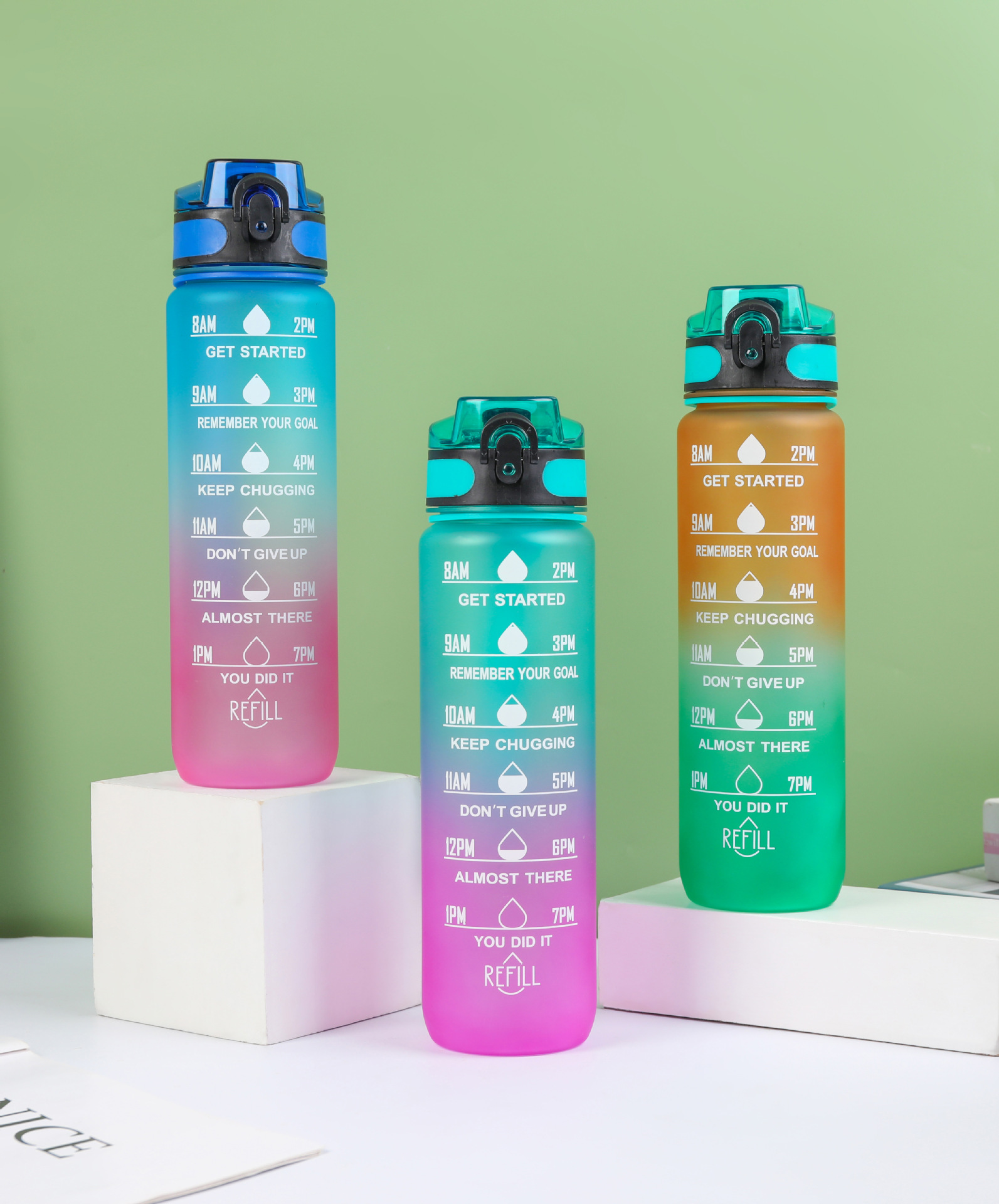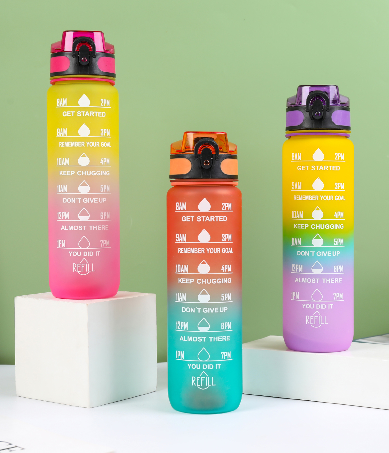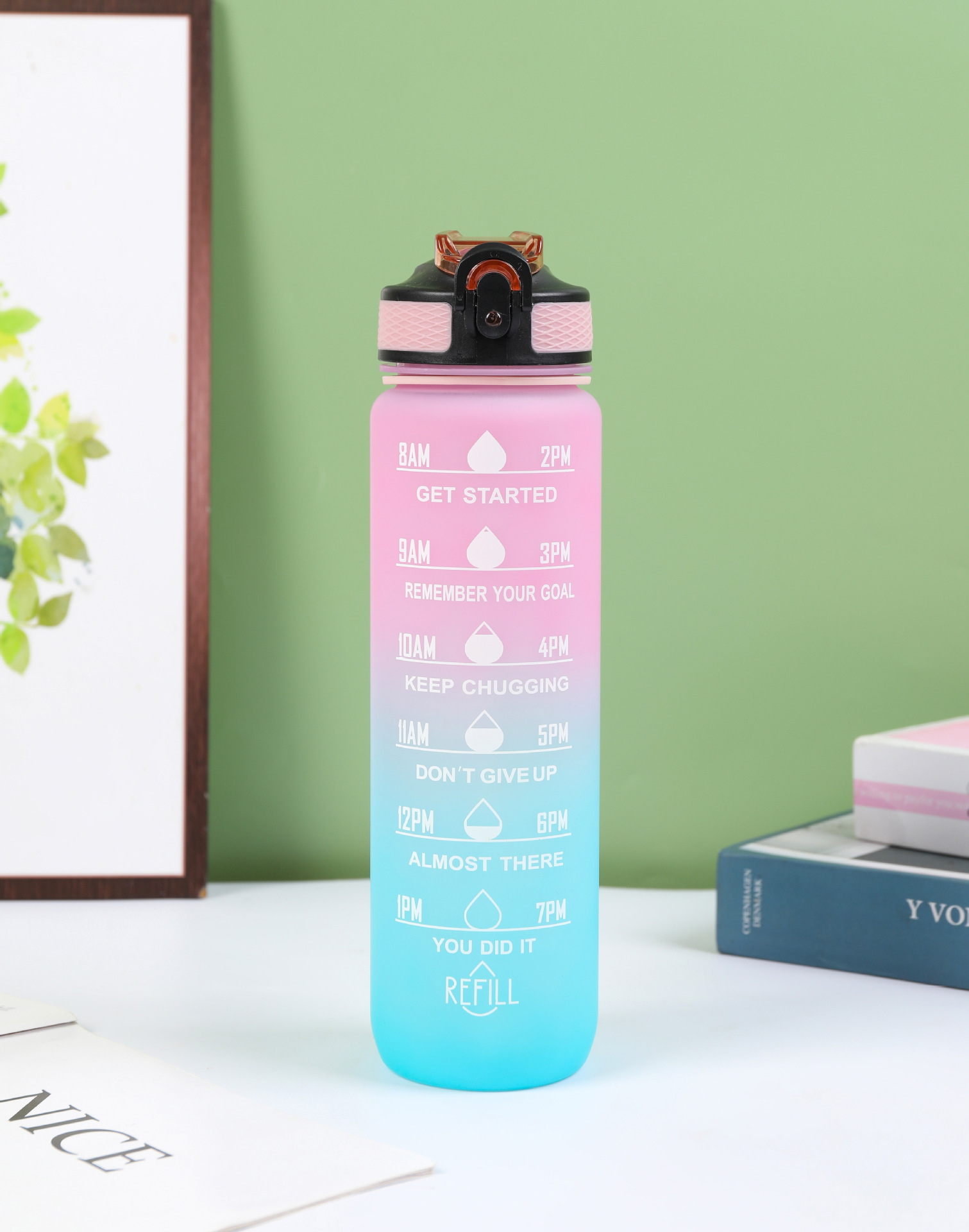 Estilo coreano 1000ml gradiente espacio de color Copa de fitness deportes hervidor de plástico transfronterizo rebote Tumbling Copa con escala
