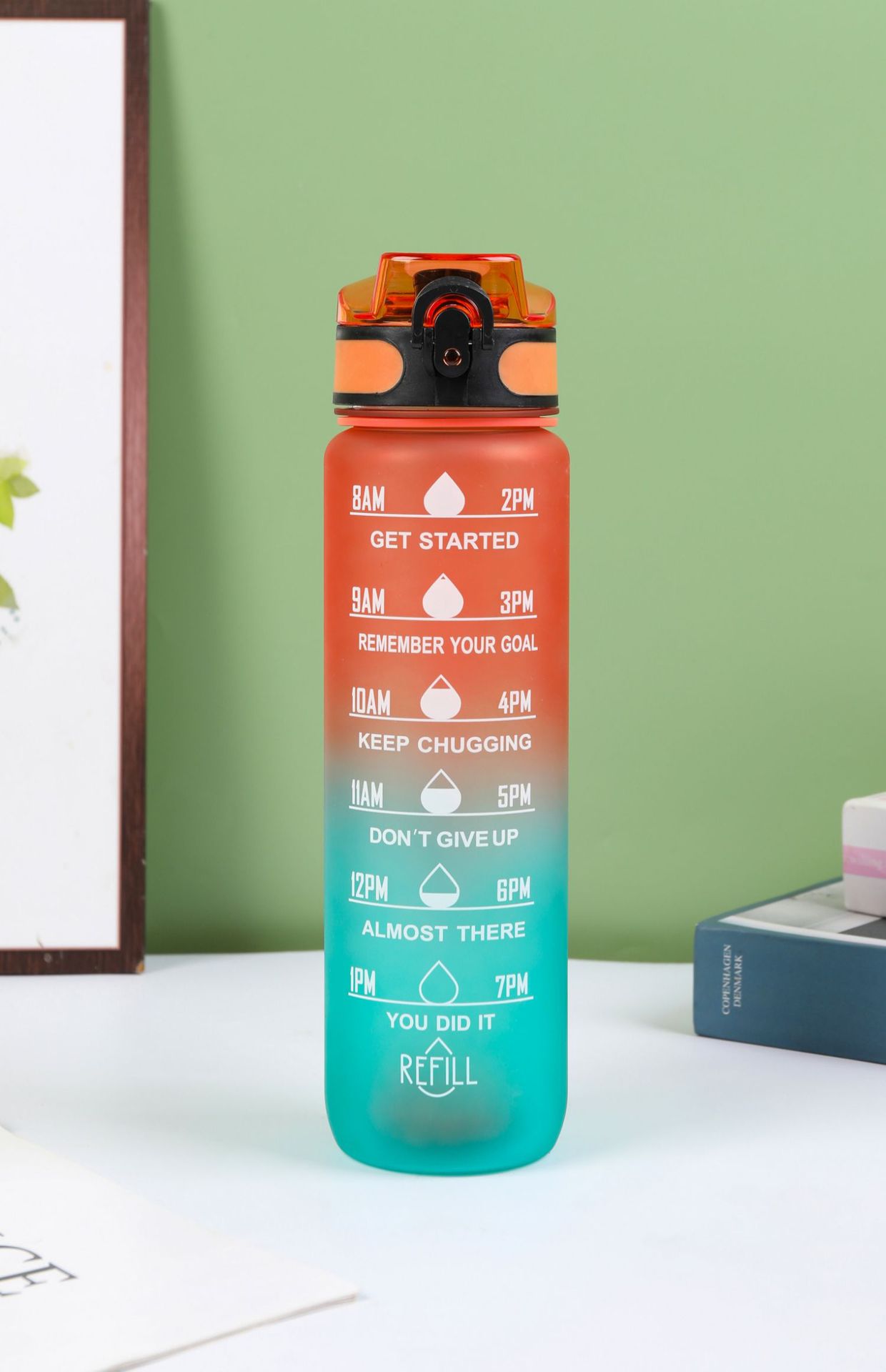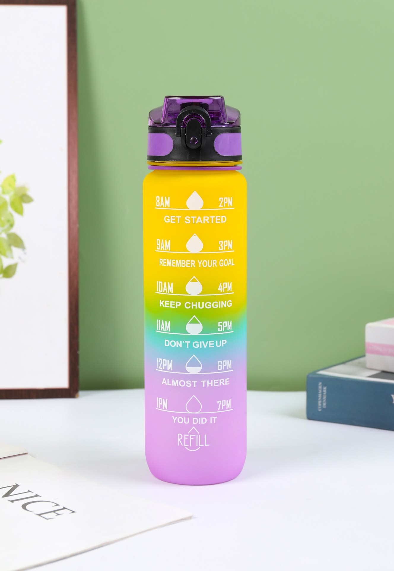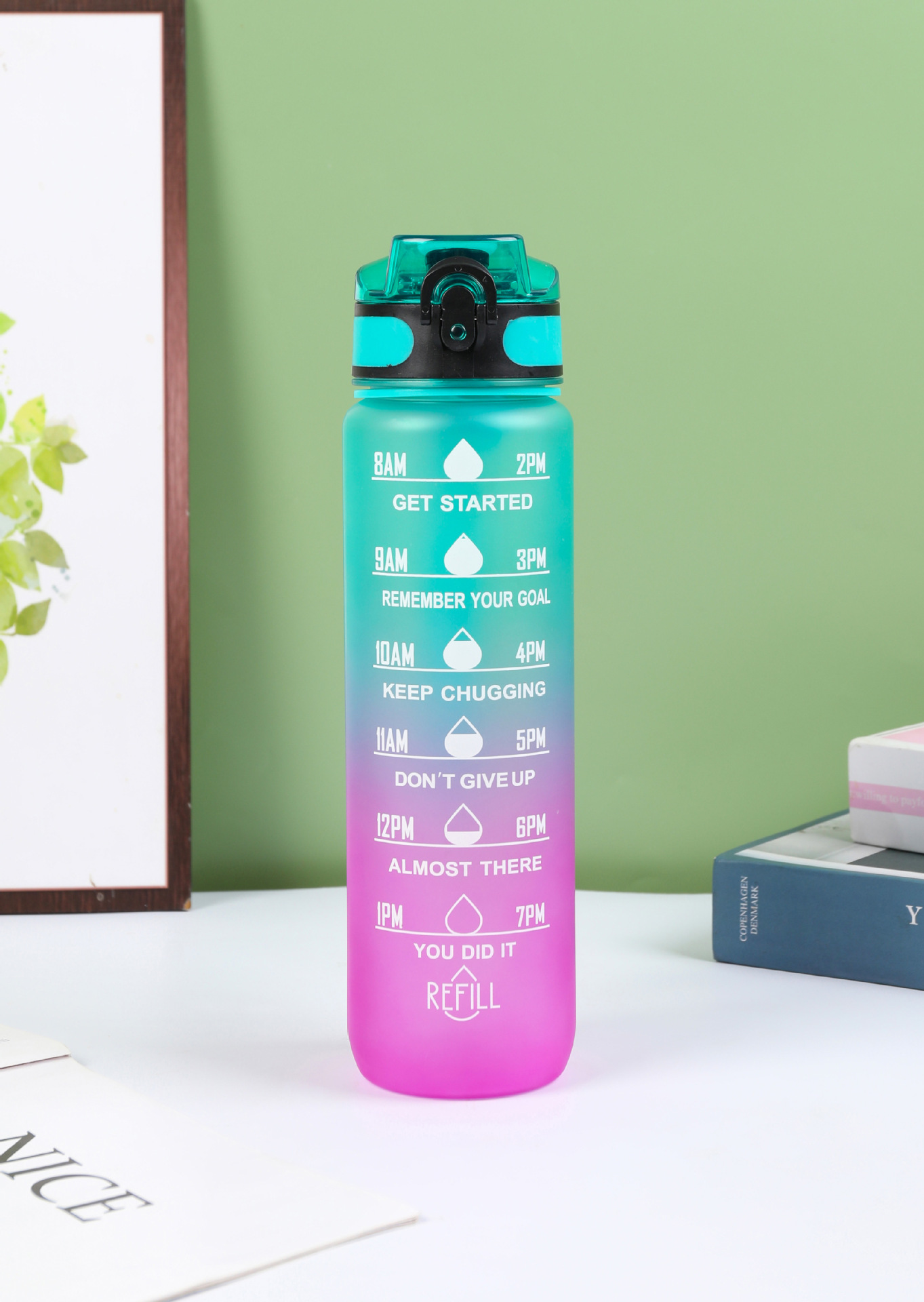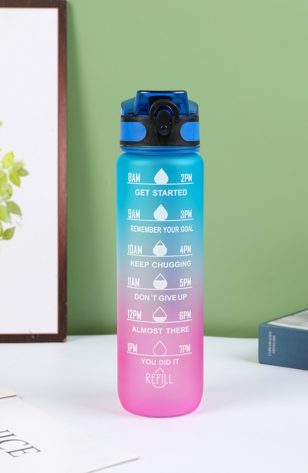 Estilo coreano 1000ml gradiente espacio de color Copa de fitness deportes hervidor de plástico transfronterizo rebote Tumbling Copa con escala