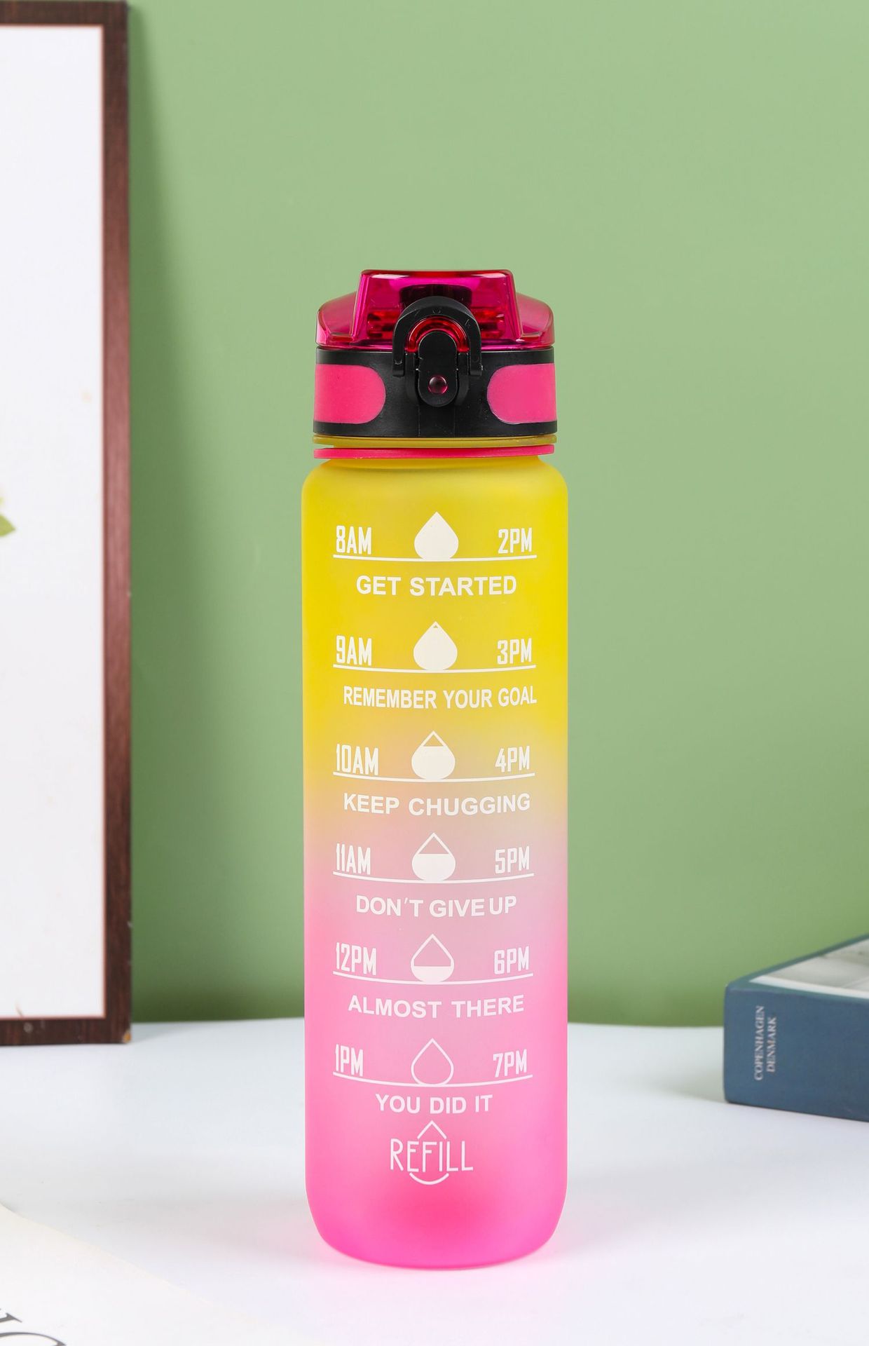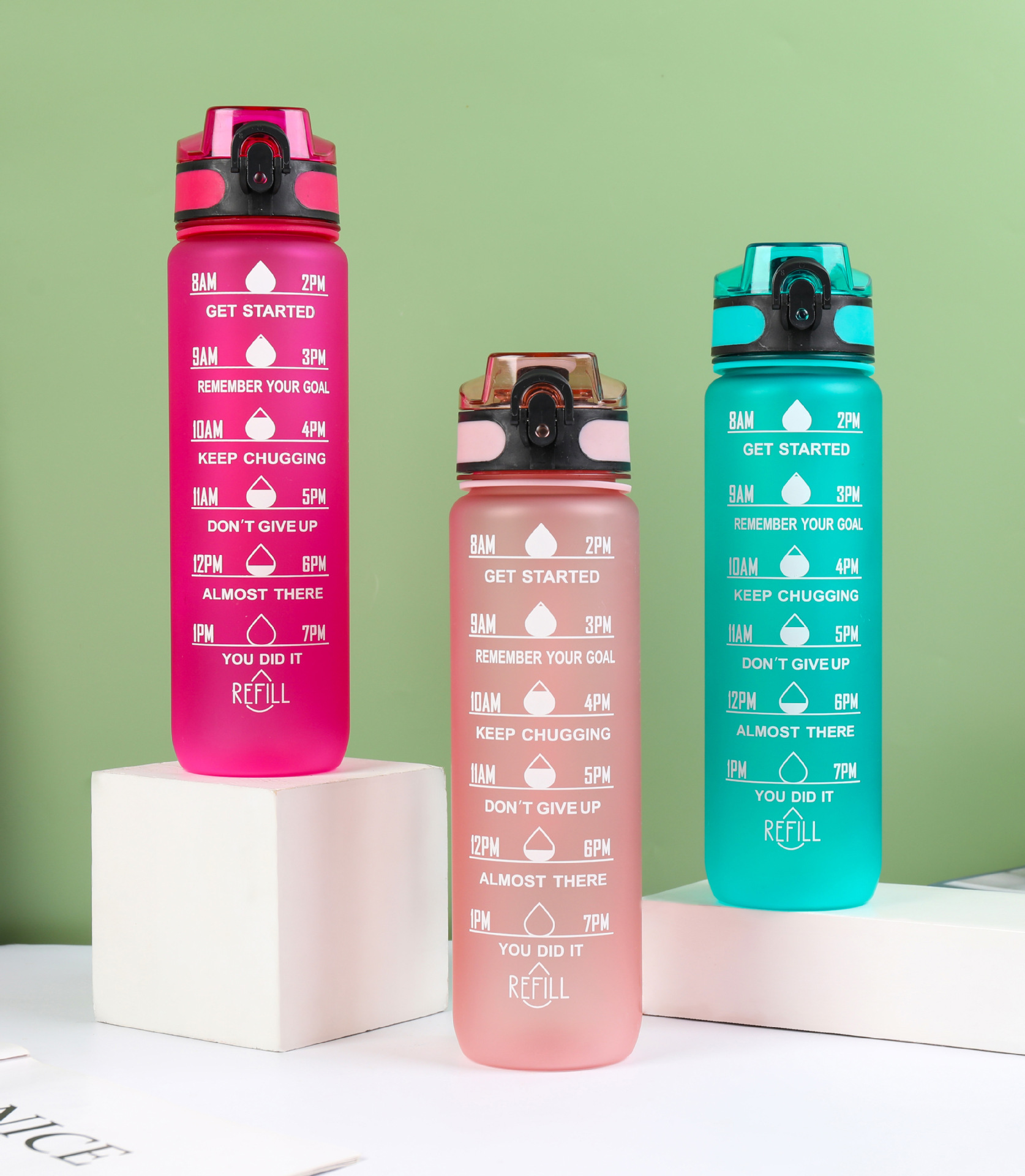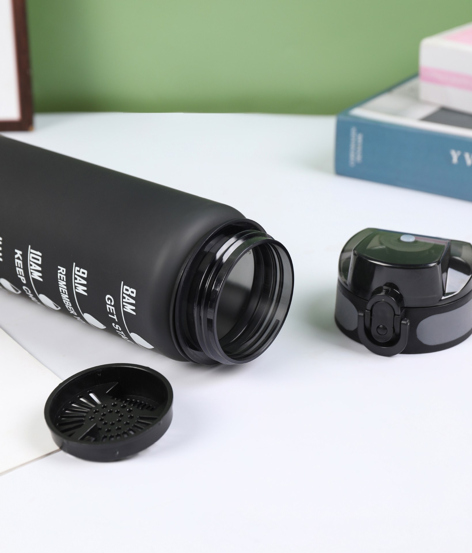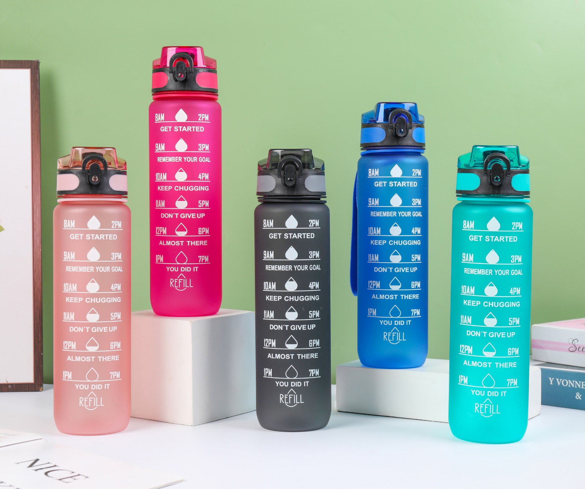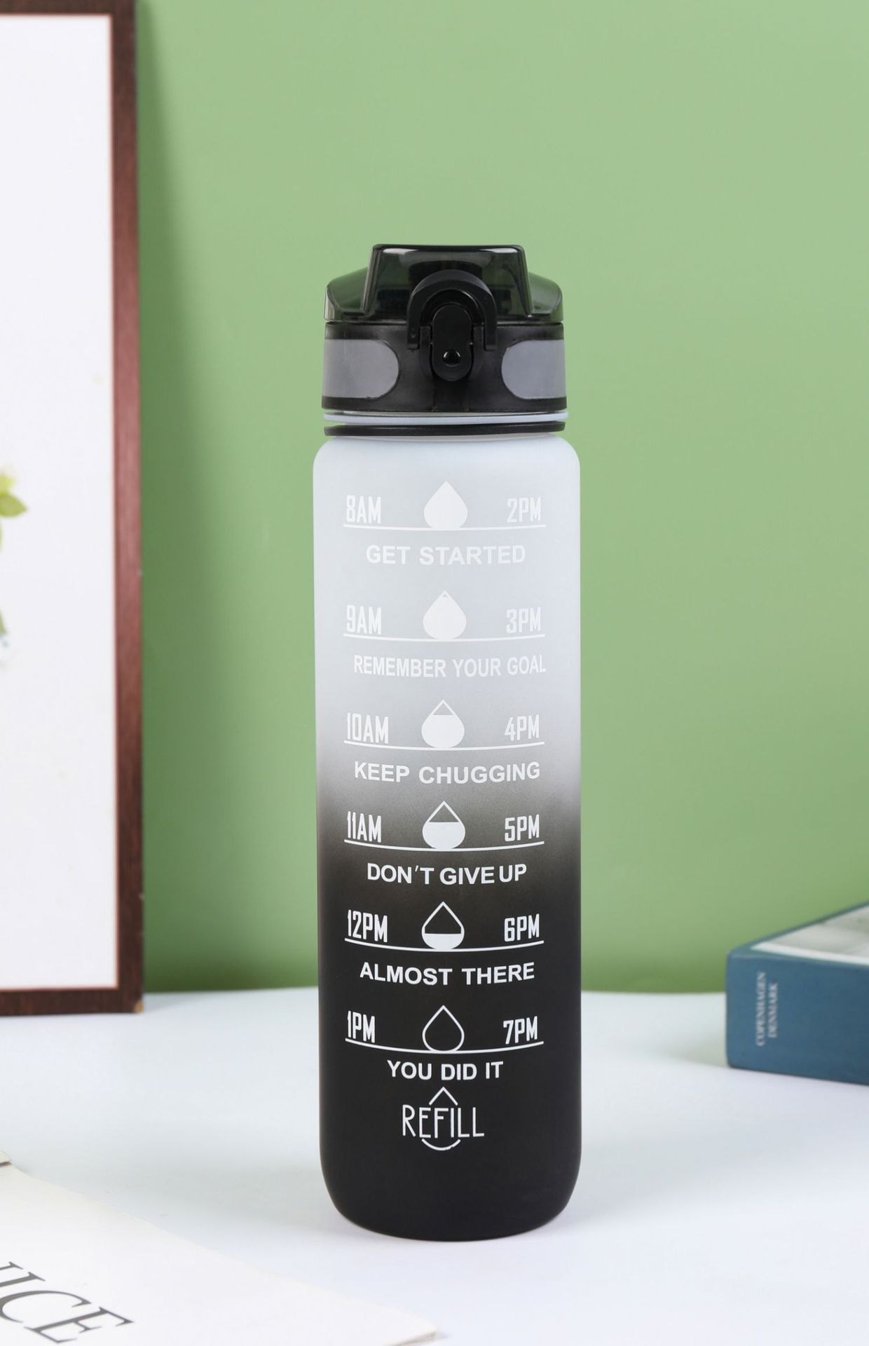 Estilo coreano 1000ml gradiente espacio de color Copa de fitness deportes hervidor de plástico transfronterizo rebote Tumbling Copa con escala