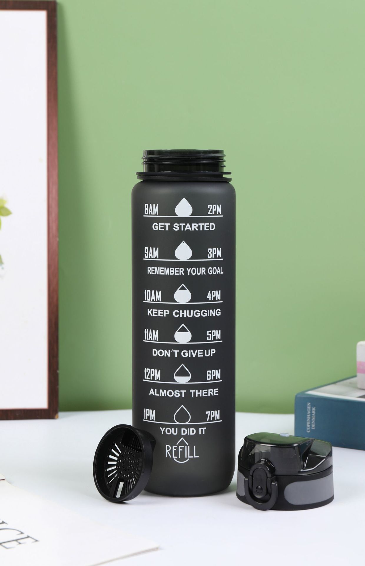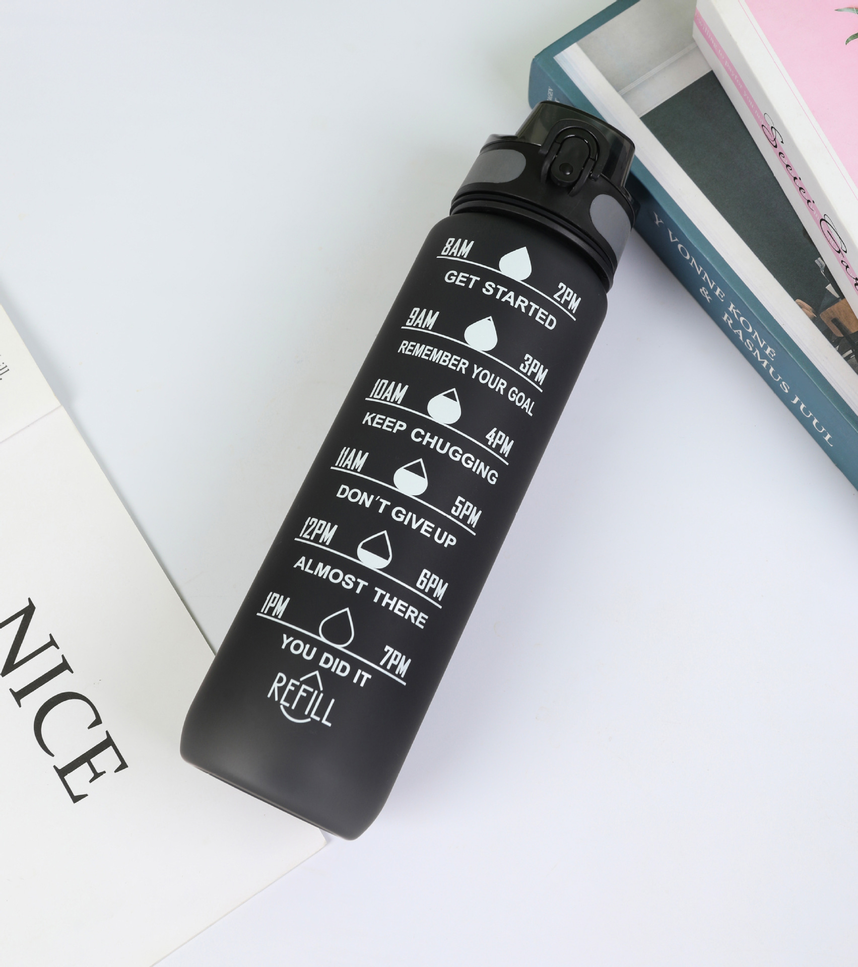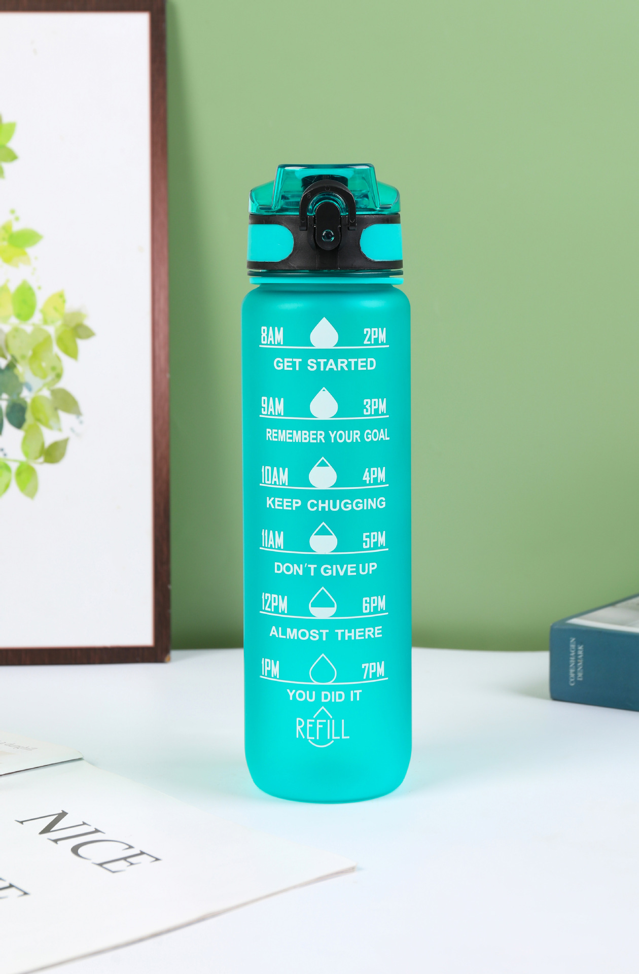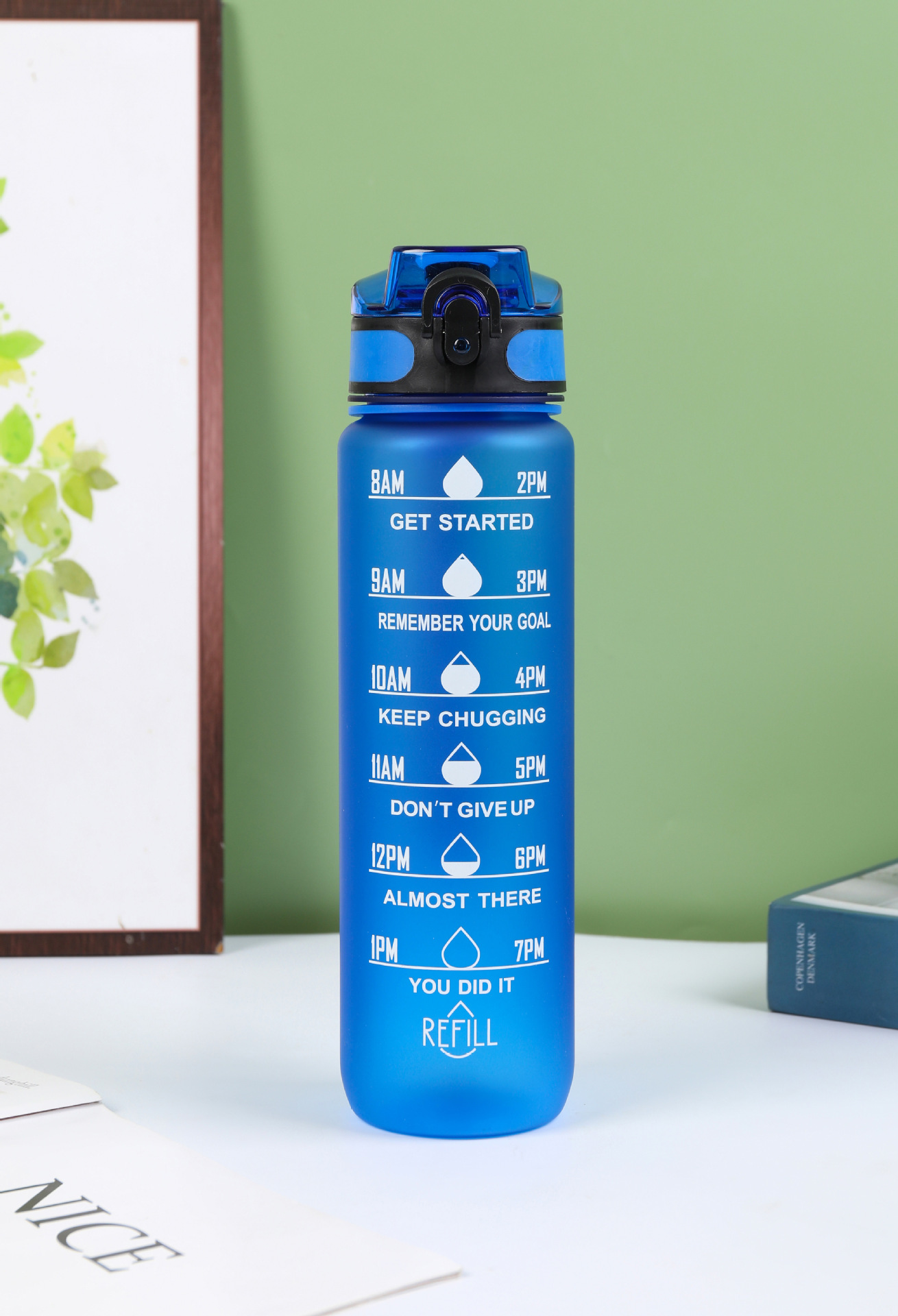 Estilo coreano 1000ml gradiente espacio de color Copa de fitness deportes hervidor de plástico transfronterizo rebote Tumbling Copa con escala